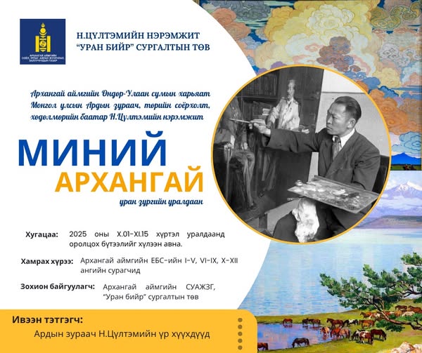 Архангай аймгийн Өндөр-Улаан сумын харьяат Ардын зураач, Төрийн соёрхолт, Хөдөлмөрийн баатар Н.Цүлтэмийн нэрэмжит "МИНИЙ АРХАНГАЙ" хүүхдийн уран зургийн уралдаан зохион байгуулагдана.