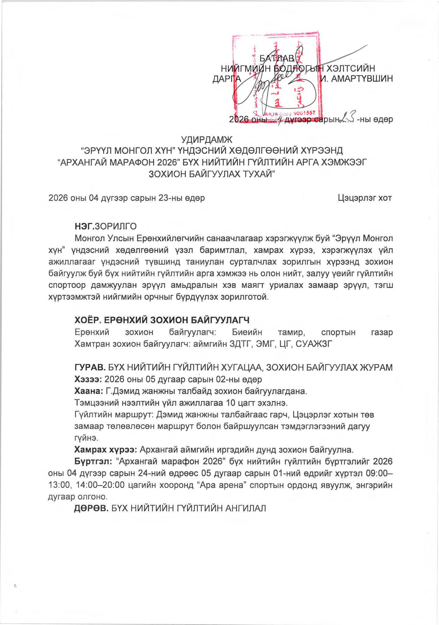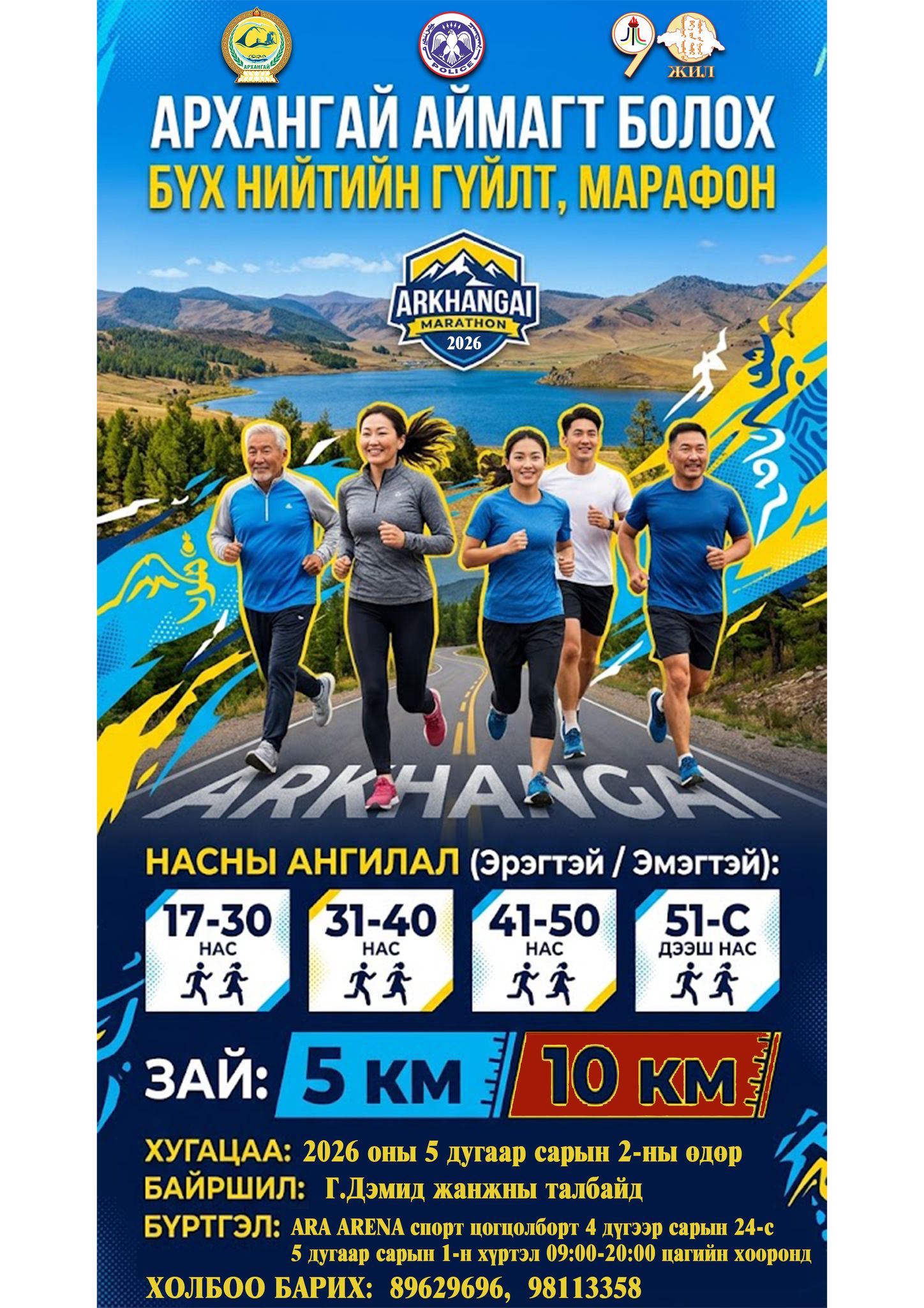 Бүртгэл: 2026 оны 4-р сарын 24-с 5 дугаар сарын 1-н хүртэл АРА АРЕНА спорт цогцолборт 09:00-20:00 цагийн хооронд явагдана.