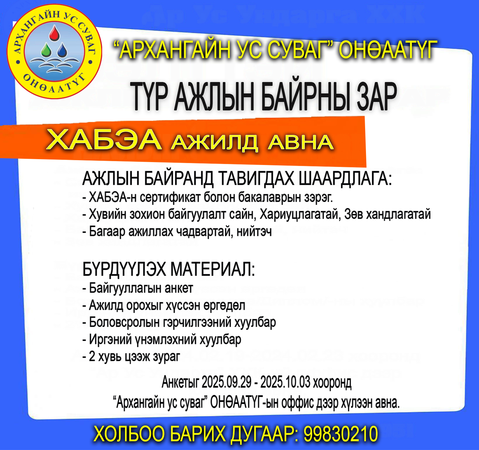 "АРХАНГАЙ УС СУВАГ" ОНӨААТҮГ