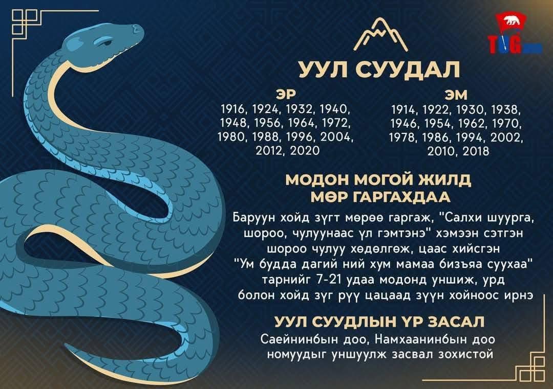 Уул суудлын цээр: Ан гөрөө хийх, нойтон мод огтлох, бохир идээ, хар малгай, хувцас авах, өмсөхийг цээрлэ. Зэр зэвсэг, гудас бүү ав. Өвс татах, газар хөдлөх үеэр анхаар. Луу сар барцадтай, өмнө зүг тааруу. Бар сарын 11-ний шөнө зүүн өмнө ба хойд зүгт бүү яв. Цангах, үс унах, яр шархнаас сэрэмжил.