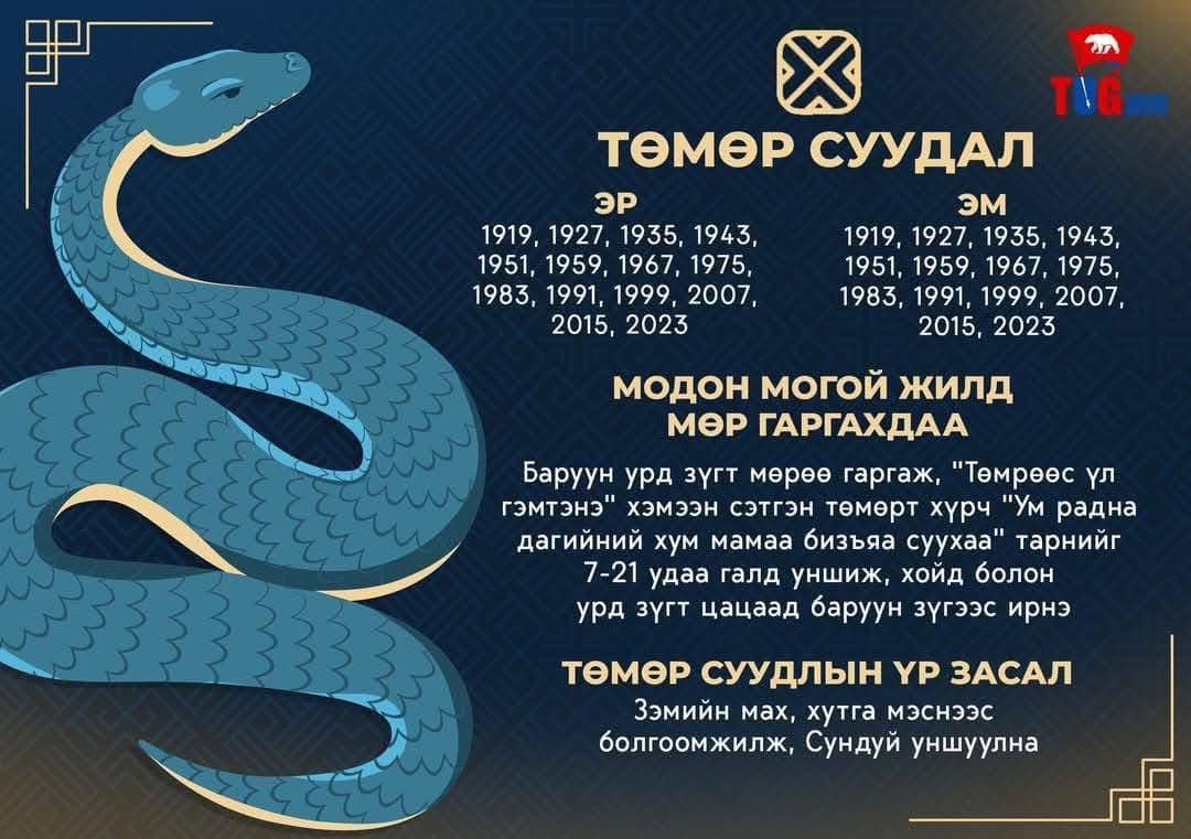 Төмөр суудлын цээр: Энэ жилдээ чоно, нохойд хазуулсан малын мах, ялангуяа зүүн хавирганых нь махыг идэхийг цээрлэ. Хуяг дуулга, хутга мэс, хүзүүний зүүлт бүү ав. Хутга мэсний аюулд анхаар. Уушги, зүрх, гэдэсний өвчин, яс бэртэхээс сэрэмжил. Гол мөрний улс зайрмагтан хөлдөх үеэс болгоомжил. Бар сарын 4-ний өдөр нар жаргах үед зүүн ба зүүн өмнө зүгт бүү яв
