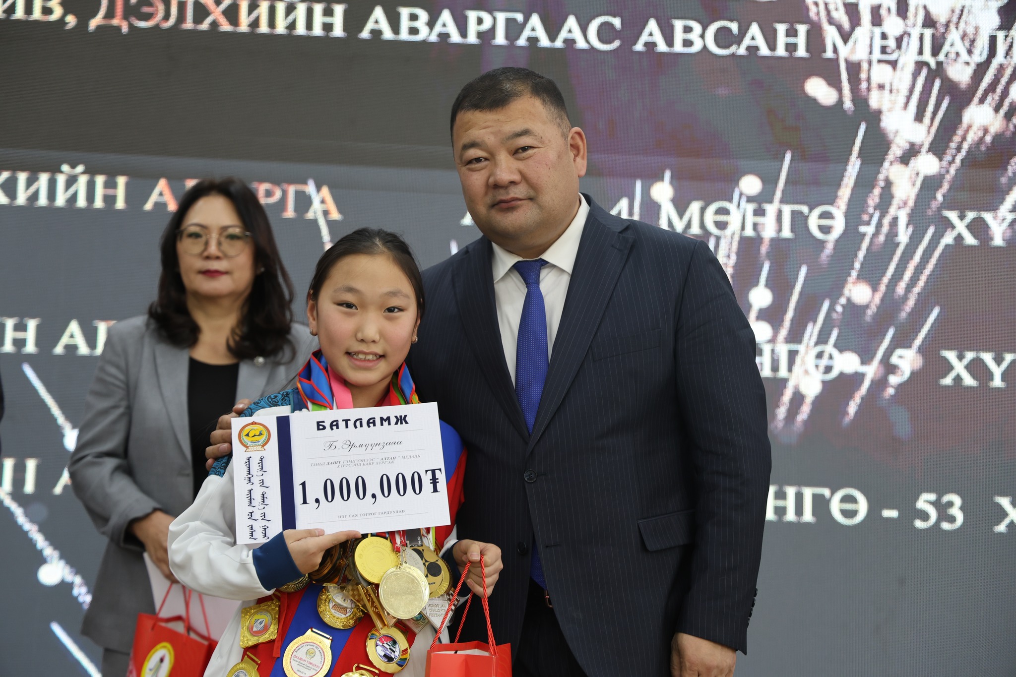 Тив дэлхийн аварга шалгаруулах тэмцээнээс медаль хүртсэн тамирчдад “Тамирчны алдар” арга хэмжээний үеэр аймгийн Засаг дарга Б.Цэрэннадмид шагнал гардууллаа.