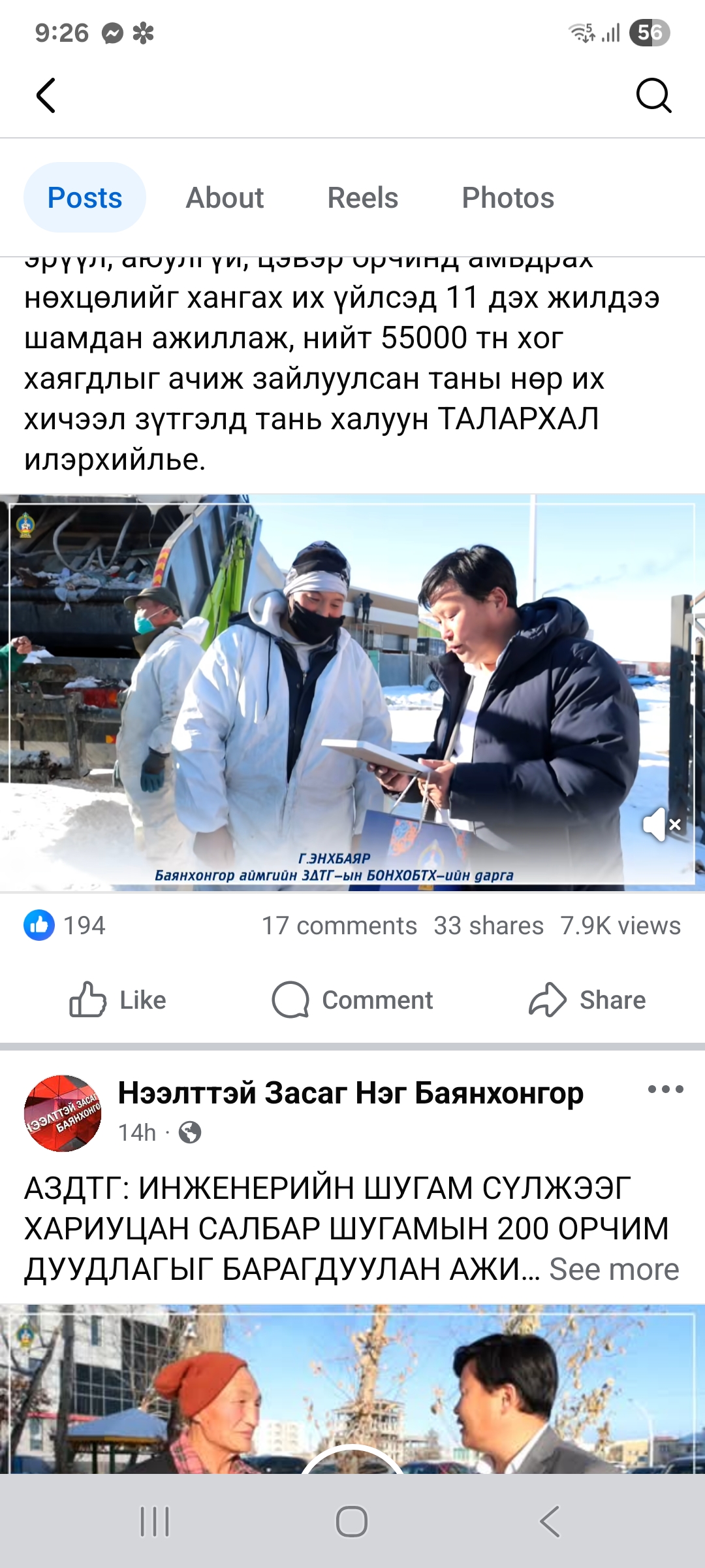 Хонгор нутгийнхаа хөгжилд өөрийн хүч, хөдөлмөрөө зориулан ард иргэдийн ая тухтай амьдрах нөхцөлийг хангах их үйлсэд 19 дахь жилдээ шамдан ажиллаж аймгийн төвийн инженерийн шугам сүлжээний хэвийн үйл ажиллагааг биечлэн хариуцаж, айл өрх, салбар шугамын 200 орчим дуудлагыг барагдуулан ажилласан "Чандмань Баянхонгор" ХК-ийн ажилтан С.Гантөмөр таны нөр их хичээл зүтгэлд тань халуун ТАЛАРХАЛ илэрхийлье.