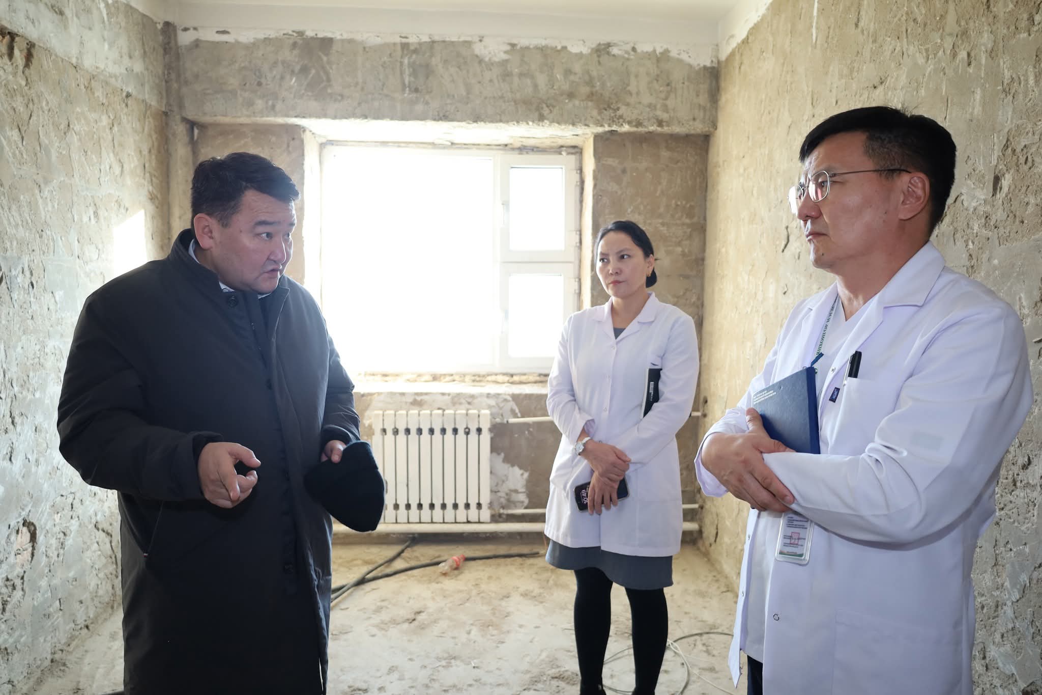 Баянхонгор аймгийн Нэгдсэн эмнэлгийн Төрөх, эмэгтэйчүүдийн тасгийн их засварын ажлын явцтай Засаг дарга Э.Энхбат өнөөдөр /2026.01.12/ танилцлаа.