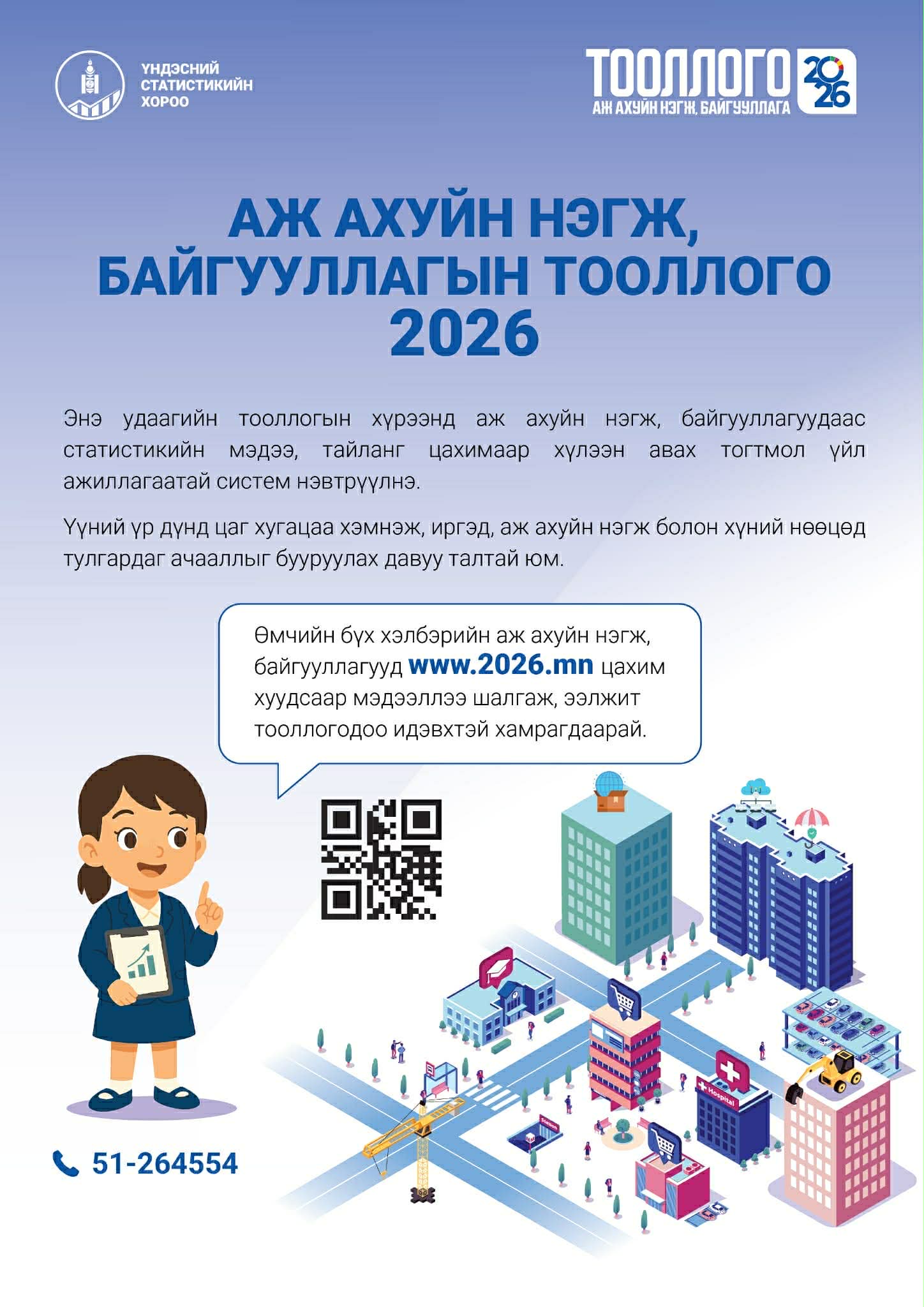 Өмчийн бүх хэлбэрийн ААН, байгууллагууу www.2026.mn цахим хуудсаар мэдээллээ шалгаж, ээлжит тооллогодоо идэвхитэй хамрагдана уу.
