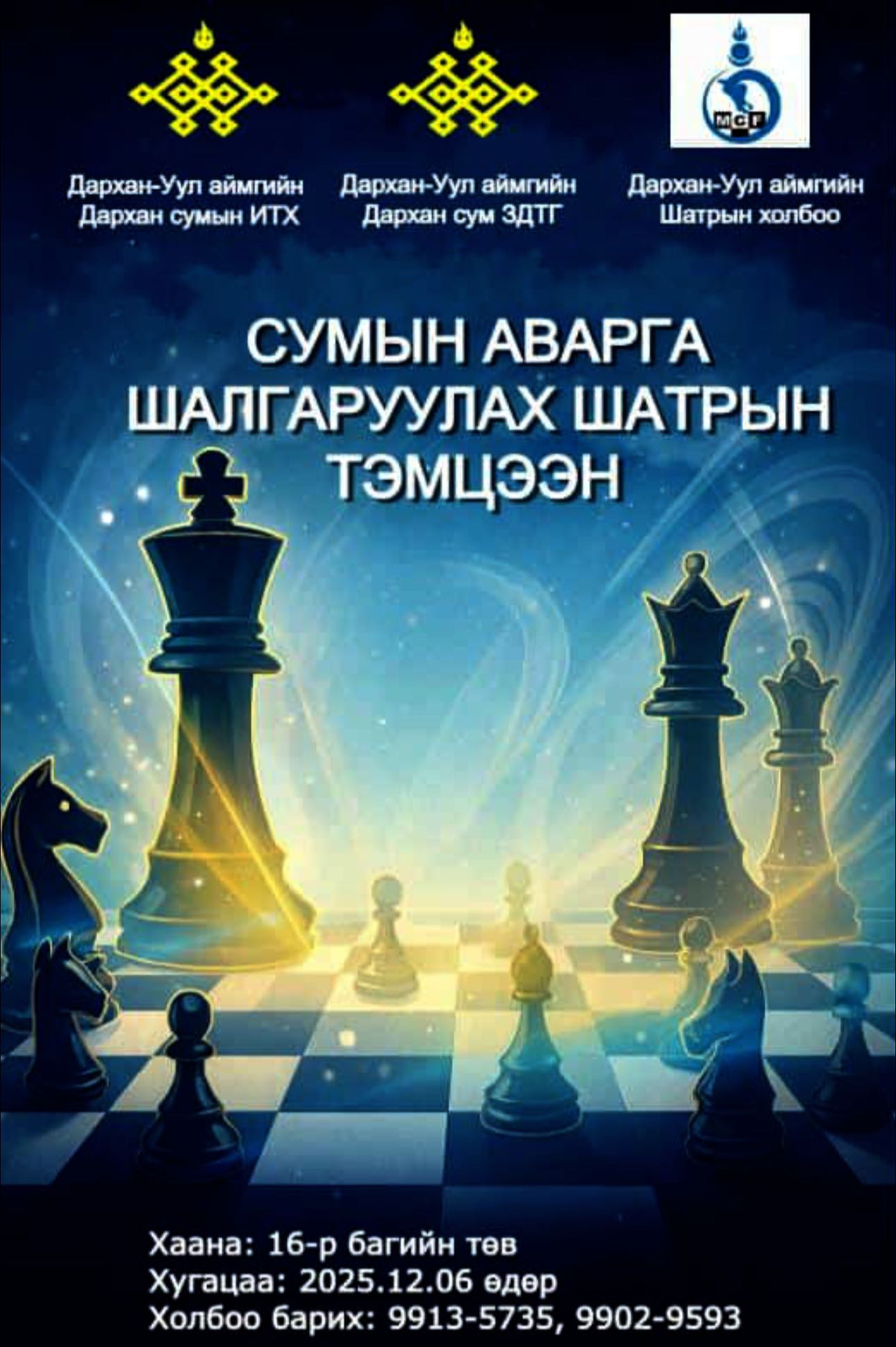 Монгол Улсын Үндсэн хуулийн өдрийг тохиолдуулан Монгол Улсын Их Хурлын даргын ивээл дор зохион байгуулагддаг “Шатар сонирхогчдын улсын аварга шалгаруулах тэмцээн”-ий хүрээнд Дархан сумын анхан шатны тэмцээн 2025 оны 12 дугаар сарын 6–7-ны өдрүүдэд зохион байгуулагдахаар боллоо.