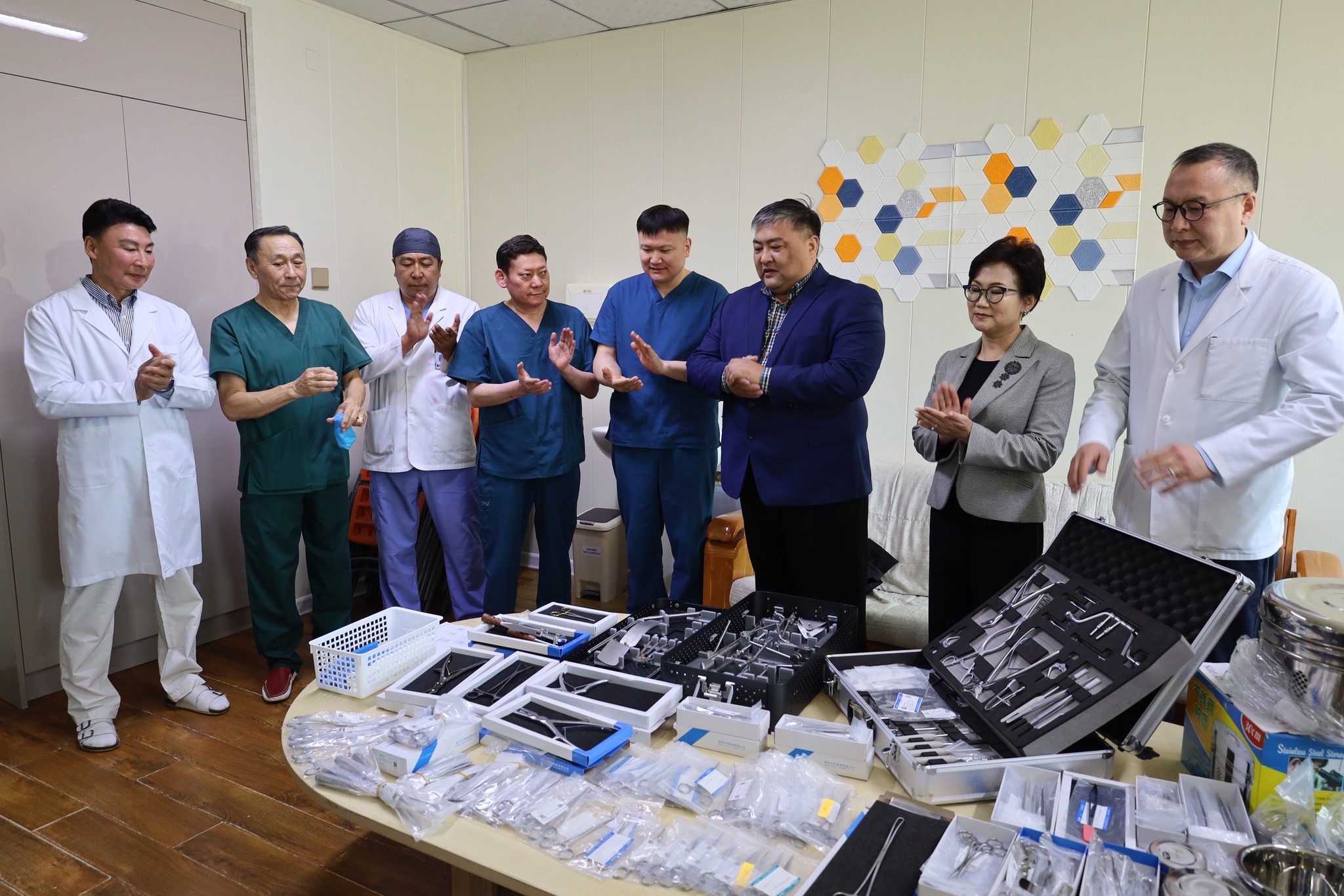 Үүнд тархины хагалгааны ком, томпсоны шарх тэлэгч, хутганы иш, хайч, хямсаа, судасны зүү баригч, яс баригч, тасдагч хөрөө зэрэг сайн чанарын зэвэрдэггүй материалтай, олон удаагийн хэрэглээний ариутгалын чанар даах 32 нэр төрлийн 534 ширхэг багаж хэрэгсэл багтжээ.