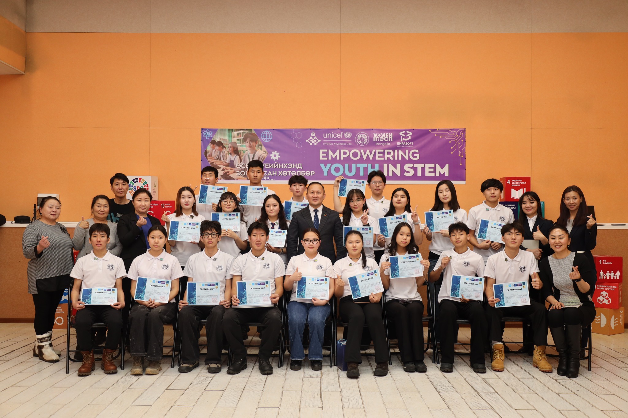 Дархан_Сум, UNICEF Mongolia, Дархан-Уул аймгийн эмэгтэйчүүдийн холбоо, Empasoft Institute of Technology, Women in Tech Mongolia хамтран аймгийн Ерөнхий боловсролын 12 сургуулийн 20 суралцагч шалгарч амжилттай төсөлд хамрагдлаа.
