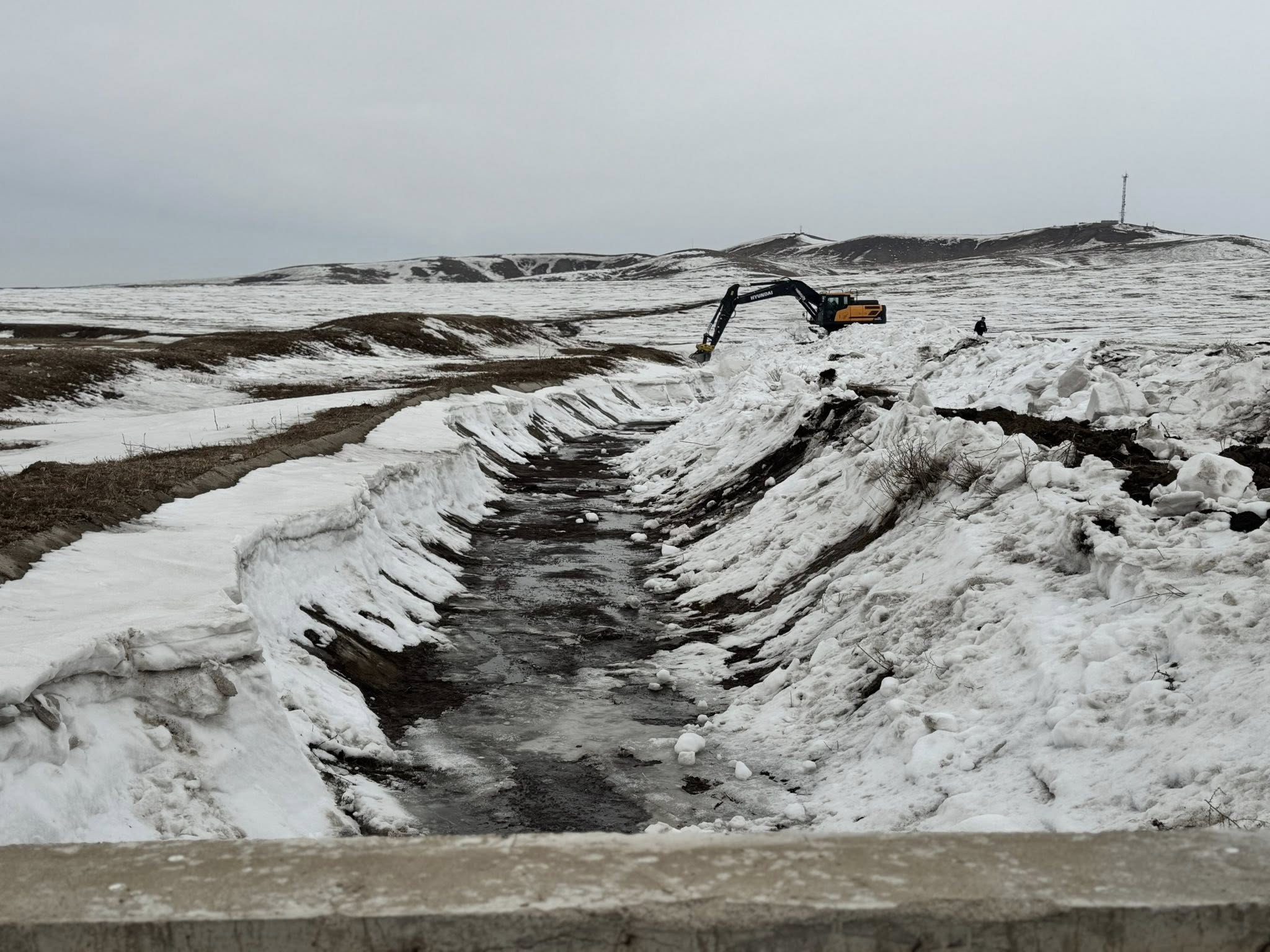 Хотын төвийн суурьшлын бүсэд ус нэвтрэхээс урьдчилан сэргийлэх, иргэдийг шар усны үерийн эрсдэлд өртөхөөс хамгаалах зорилгоор төрийн болон хувийн хэвшлийн байгууллагуудын том оврын техник хэрэгслийг дайчлан, ус зайлуулах суваг шуудууг нээх, халиа дошинг зайлуулах ажлыг шуурхай зохион байгуулж байна.