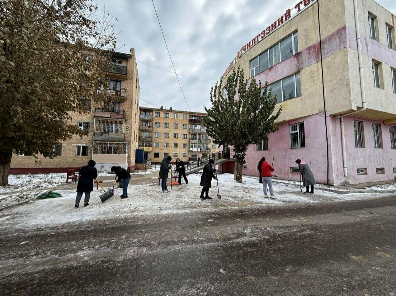 Халтиргаа гулгаанаас урьдчилан сэргийлж ойр орчмын 50м газраа цэвэрлэж байна.  | HuduuMN