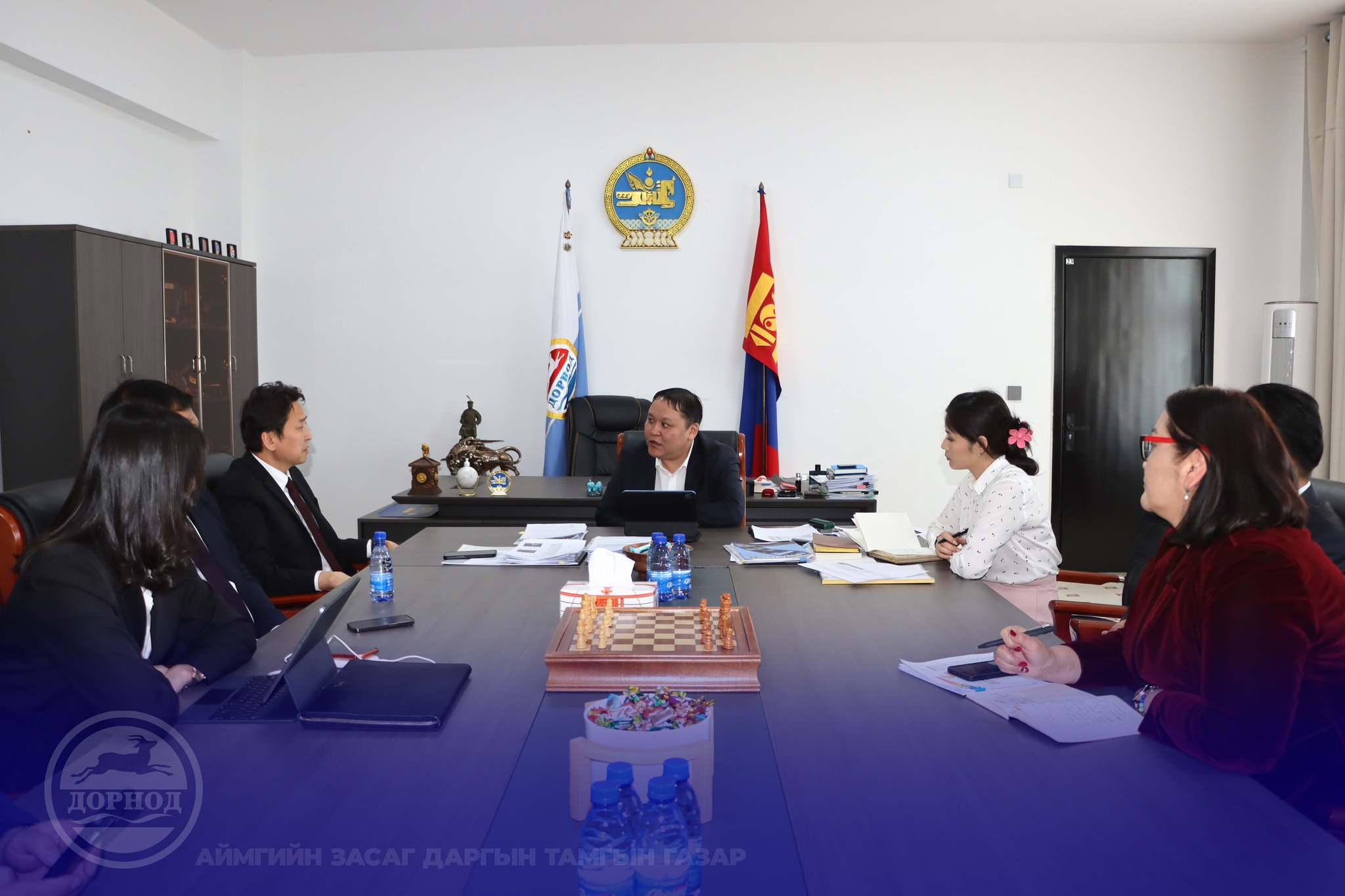 Уулзалтаар Дорнод аймагт хэрэгжиж буй бүтээн байгуулалтын ажлууд болох Баян-Уул сумын дотуур байр, Цагаан-Овоо сумын дотуур байр, Хэрлэн сумын 12 дугаар сургуулийн бага сургууль, Шинэ хөгжил цогцолбор сургуулийн бага сургуулийн, 3 дугаар багийн ерөнхий боловсролын сургуулийн барилгуудын ажлыг яаралтай гүйцэтгэж дуусгахад тулгарч буй асуудлуудыг хэлэлцлээ.
