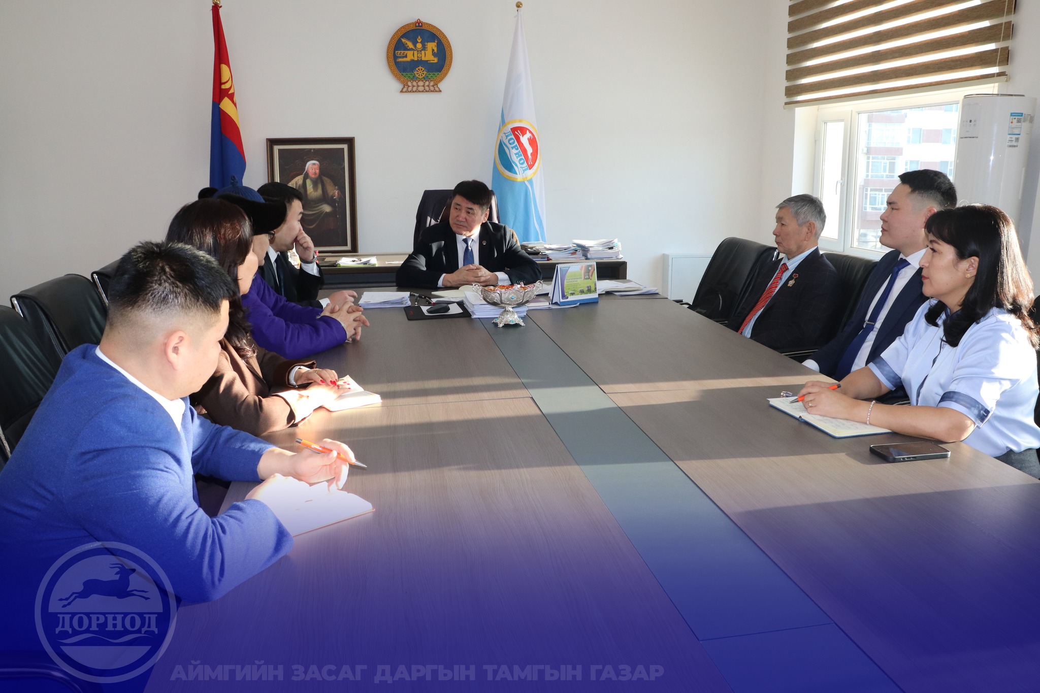 Ажлын хүрээнд аймгийн Засаг даргын орлогч Ч.Ганбат Хөгжлийн бэрхшээлтэй хүний хөгжлийн ерөнхий газрын дэд дарга М.Явуухулан тэргүүтэй ажлын хэсгийг хүлээн авч уулзан, хөгжлийн бэрхшээлтэй иргэдийн хөгжил, хамгаалал, нийгмийн баталгаа, тулгамдаж буй асуудлуудын талаар харилцан санал солилцлоо.