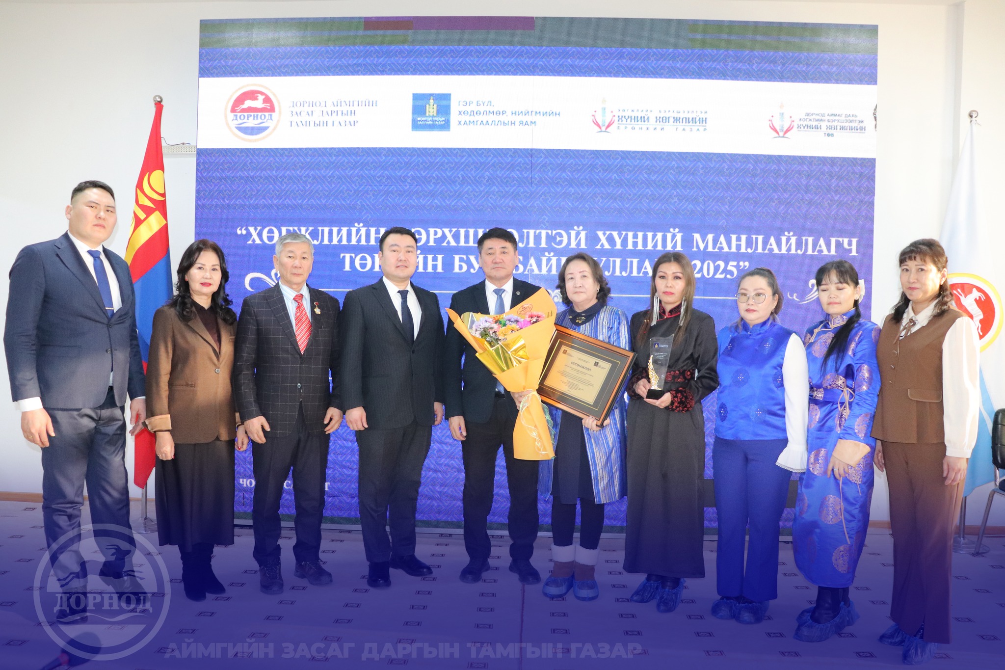 Мөн хөгжлийн бэрхшээлтэй хүний эрх, оролцоо, хөгжлийг дэмжих, хамгааллыг сайжруулах чиглэлээр салбартаа болон орон нутагтаа манлайлан ажиллаж, бодит үр дүн гаргасан байгууллага, иргэдэд олгодог Хөгжлийн бэрхшээлтэй хүний хөгжлийн ерөнхий газрын нэрэмжит “Оны шилдэг хөгжлийн бэрхшээлтэй хүний манлайлагч төрийн бус байгууллага” шагналыг Аймгийн хөгжлийн бэрхшээлтэй хүүхэдтэй эцэг эхийн холбооны зохицуулагч Т.Оюунсүрэнд гардуулан өглөө.