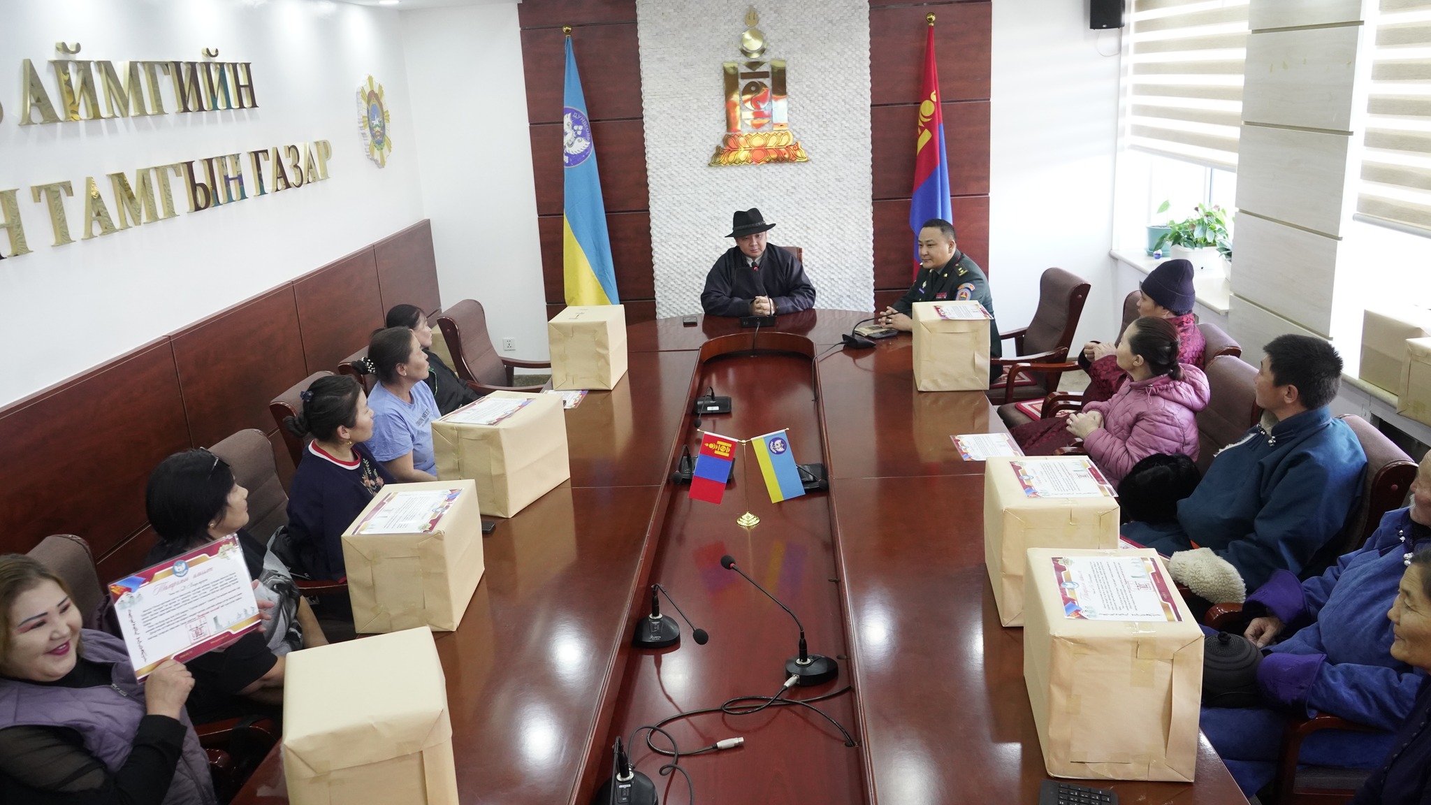 Уулзалтаар аймгийн Засаг даргын талархлын илгээлт, сар шинийн баярын хүнсний багцыг Засаг даргын Тамгын газрын дарга Б.Лхагвабаатар, Цэргийн штабын дарга, дэд хурандаа Ө.Баясгалан нар уламжлан гардуулав. Хуулиар хүлээсэн иргэний үүргээ биелүүлж эх орноо батлан хамгаалах ариун үйлсэд хувь нэмрээ оруулж буй дайчид, цэргийн албанд хүүгээ мордуулсан ар гэрийнхэнд чин сэтгэлийн талархал илэрхийлсэн юм.