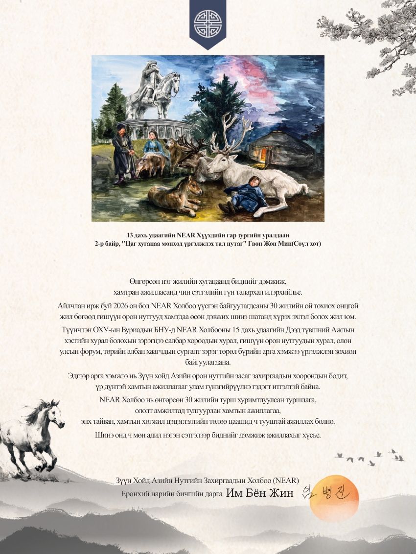 Айчлал ирж буй 2026 он бол NEAR Холбоо үүсгэн байгуулагдсаны 30 жилийн ой тохиох онцгой жил бөгөөд гишүүн орон нутгууд хамтдаа өсөн дэвжих шинэ шатанд хүрэх эхлэл болох жил юм.