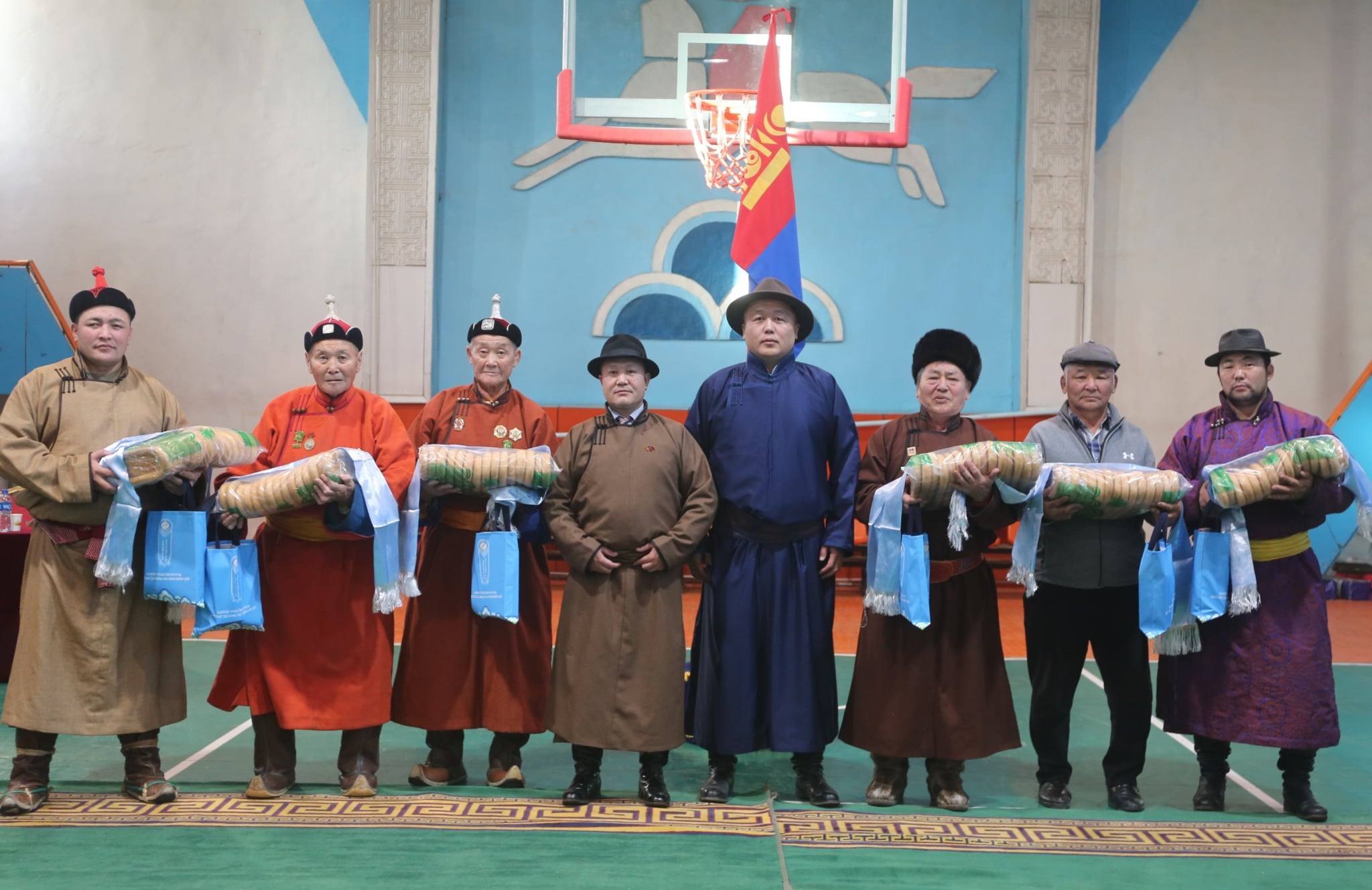 Хүрэлцэн ирсэн Аймгийн арслан, аймгийн алдарт уяач Намжилын Дорждавга, аймгийн арслан, Жүдо бөхийн спортын мастер Лэгшидын Батцагаан, Улсын сайн малчин, Аймгийн заан Баярын Сугир, Аймгийн начин, Үндэсний сурын спортын мастер Самдангийн Эрхэмбаатар, Сумын заан Буянтогтохын Энхсайхан, Сумын заан Гүндэгмаагийн Уламбаяр, бөхийн тайлбарлагч Л.Идэрмөнх нарт хүндэтгэлийг Засаг дарга С.Бат-Оргил, Засаг даргын орлогч, сумын Үндэсний бөхийн холбооны тэргүүн И.Эрдэнэцог нар гардуулан баяр хүргэлээ.