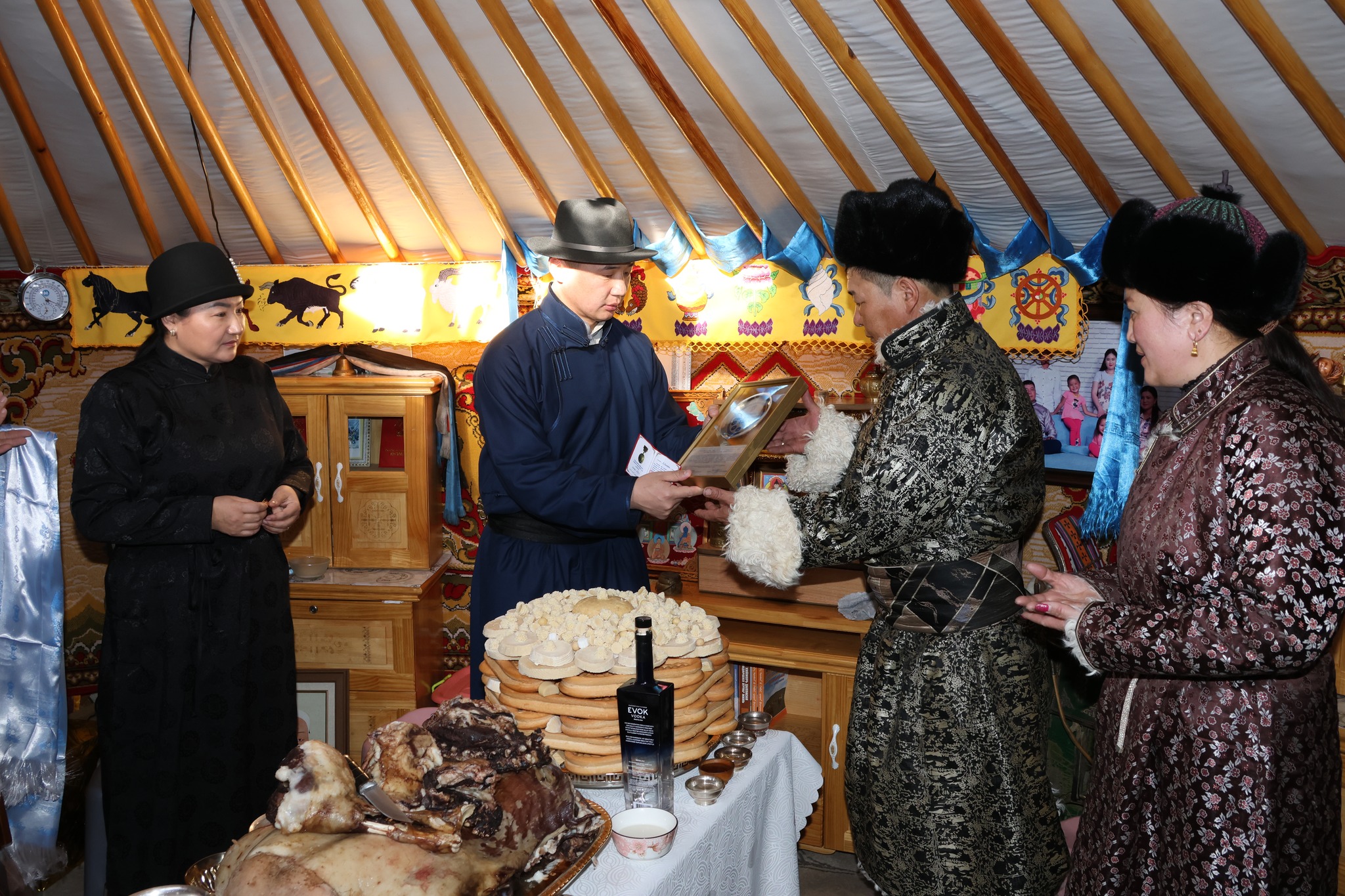 Аймгийн аварга малчны шагналыг аймгийн удирдлагууд болон албаны хүмүүс малчны хотонд нь очин хүндэтгэлтэйгээр гардуулан өглөө.