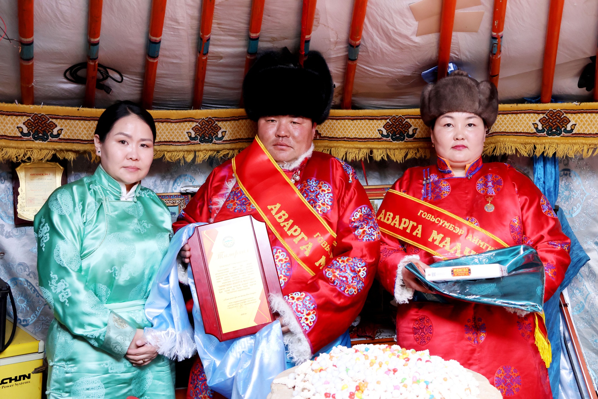 Мал аж ахуйн салбарт олон жил хөдөлмөр бүтээлээ зориулж Эрдэнэт мал сүргээ өсгөн үржүүлж, мал аж ахуйн үйлдвэрлэлийн үр ашиг, бүтээмжийг нэмэгдүүлэн, улс, орон нутгийн эдийн засаг, нийгмийн хөгжилд үнэтэй хувь нэмэр оруулсан амжилтаараа ийнхүү эрхэм хүндтэй шагналыг хүртсэн удам дамжсан малчин гэр бүлд баяр хүргэе.