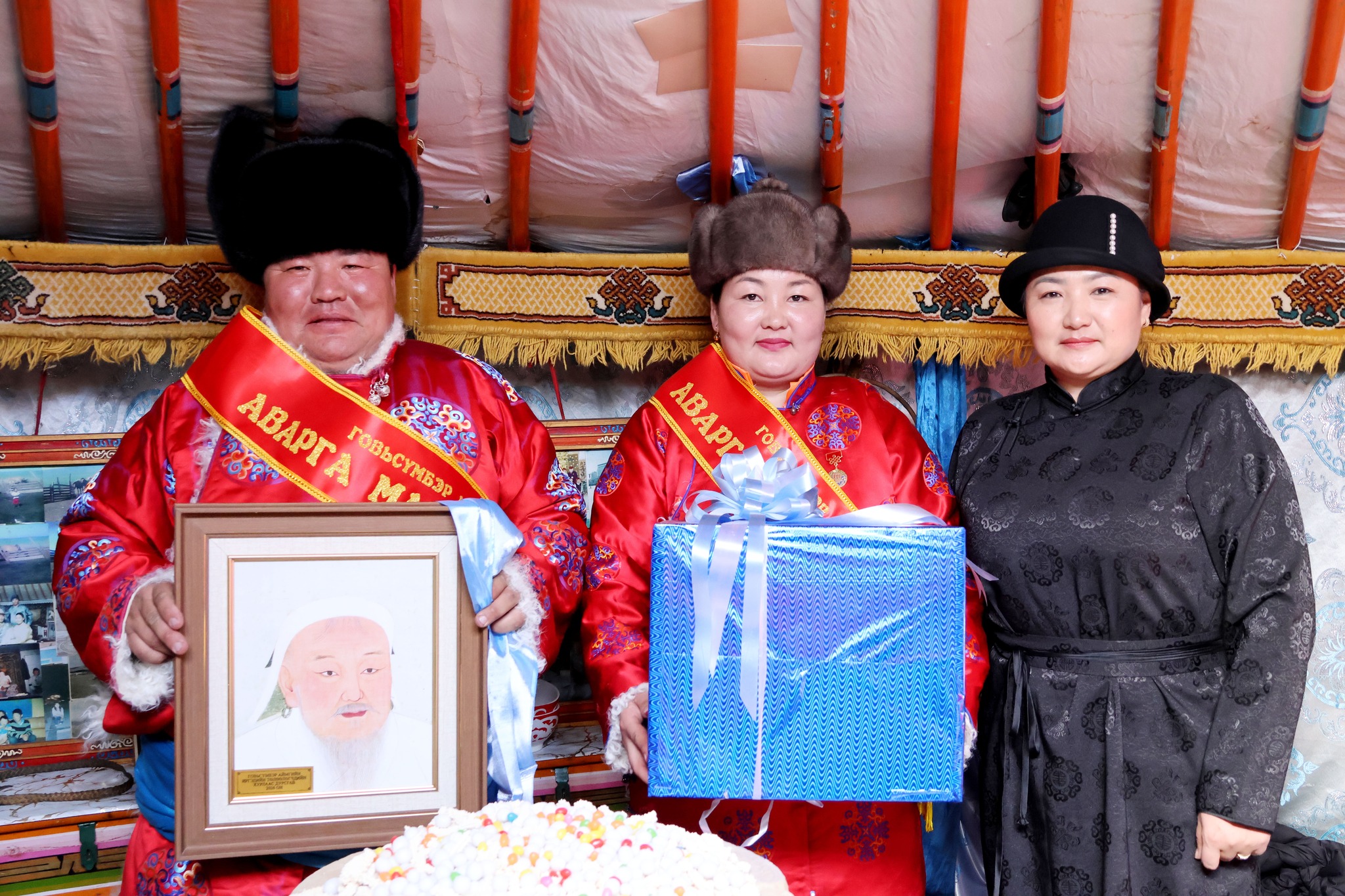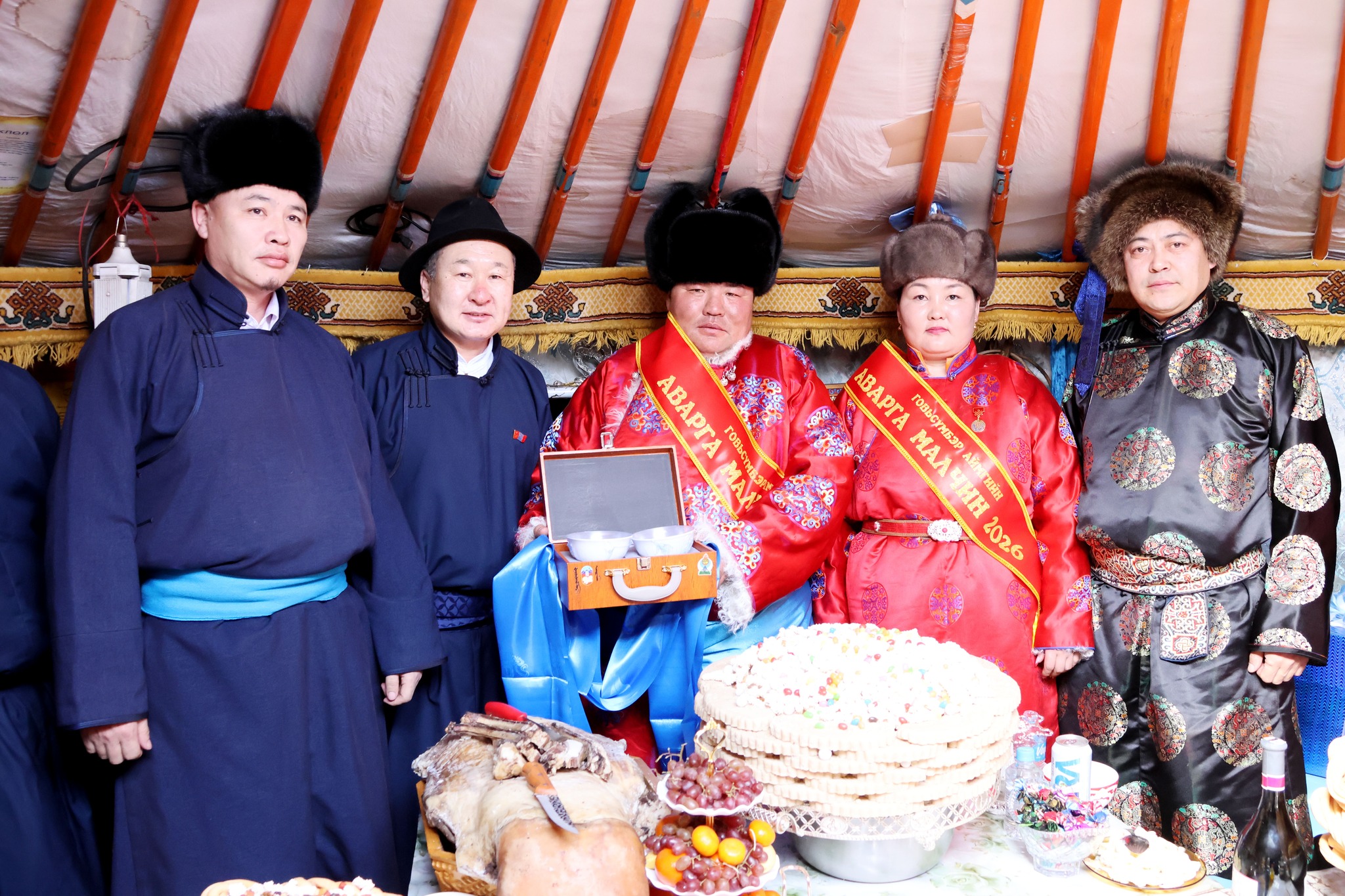Аймгийн аварга малчны шагналыг аймгийн удирдлагууд болон албаны хүмүүс малчны хотонд нь очин хүндэтгэлтэйгээр гардуулан өглөө.