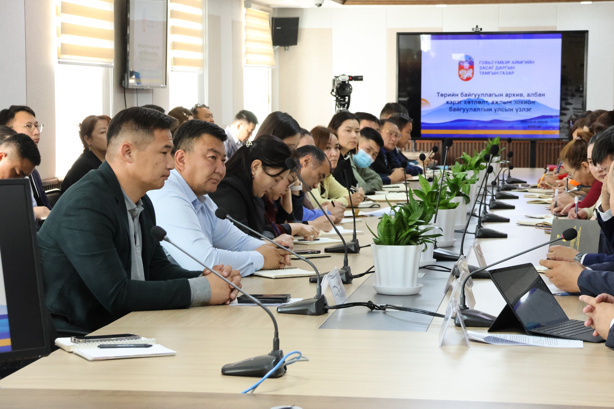 Засгийн газрын 2025 оны 07 дугаар сарын 09-ний өдрийн 23 дугаар тогтоолоор батлагдсан "Төрийн архив, албан хэрэг хөтлөлт, ажлын зохион байгуулалтын улсын үзлэг"-ийн ажлын хэсэг Говьсүмбэр аймагт ажиллаж байна.