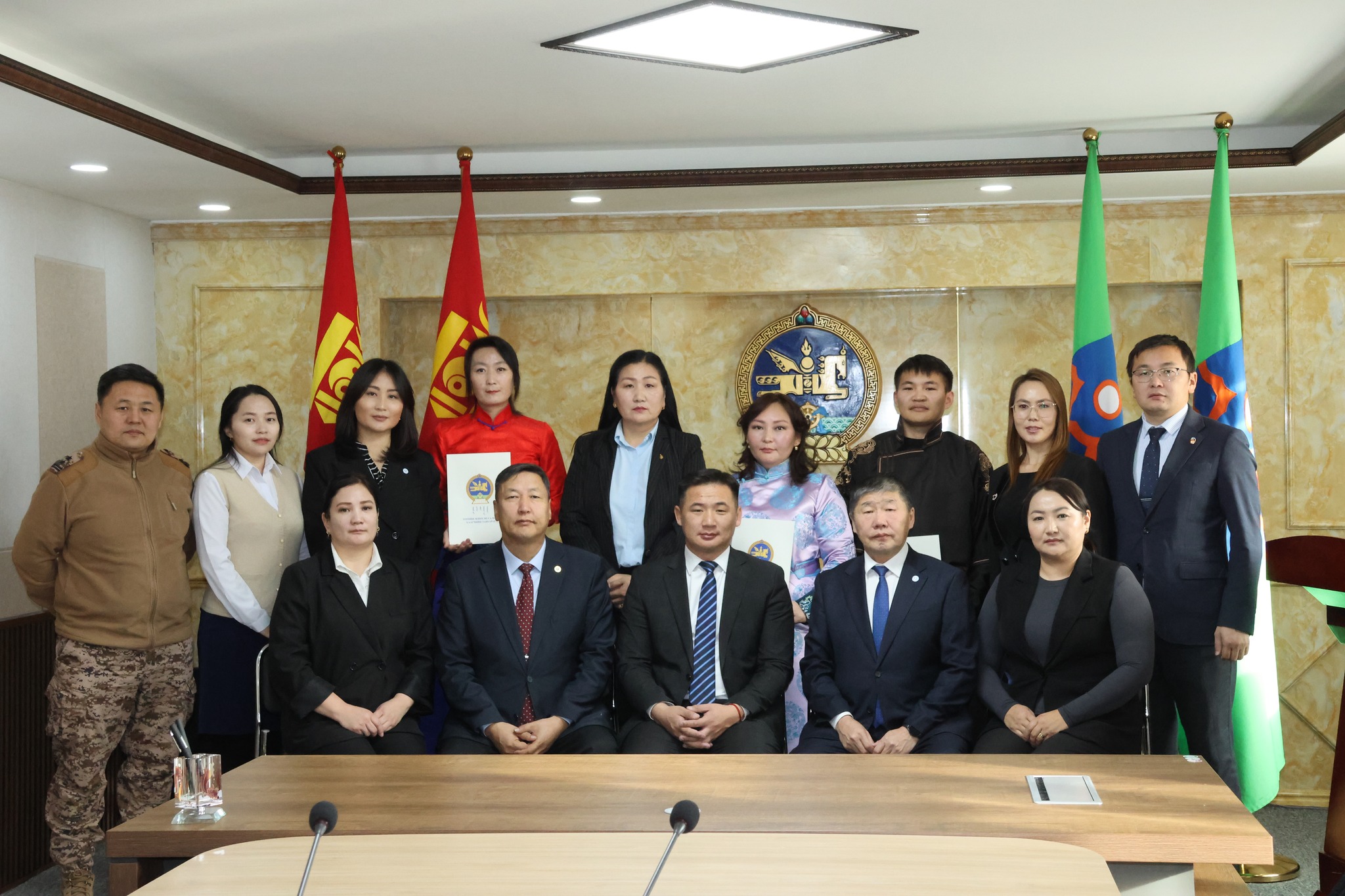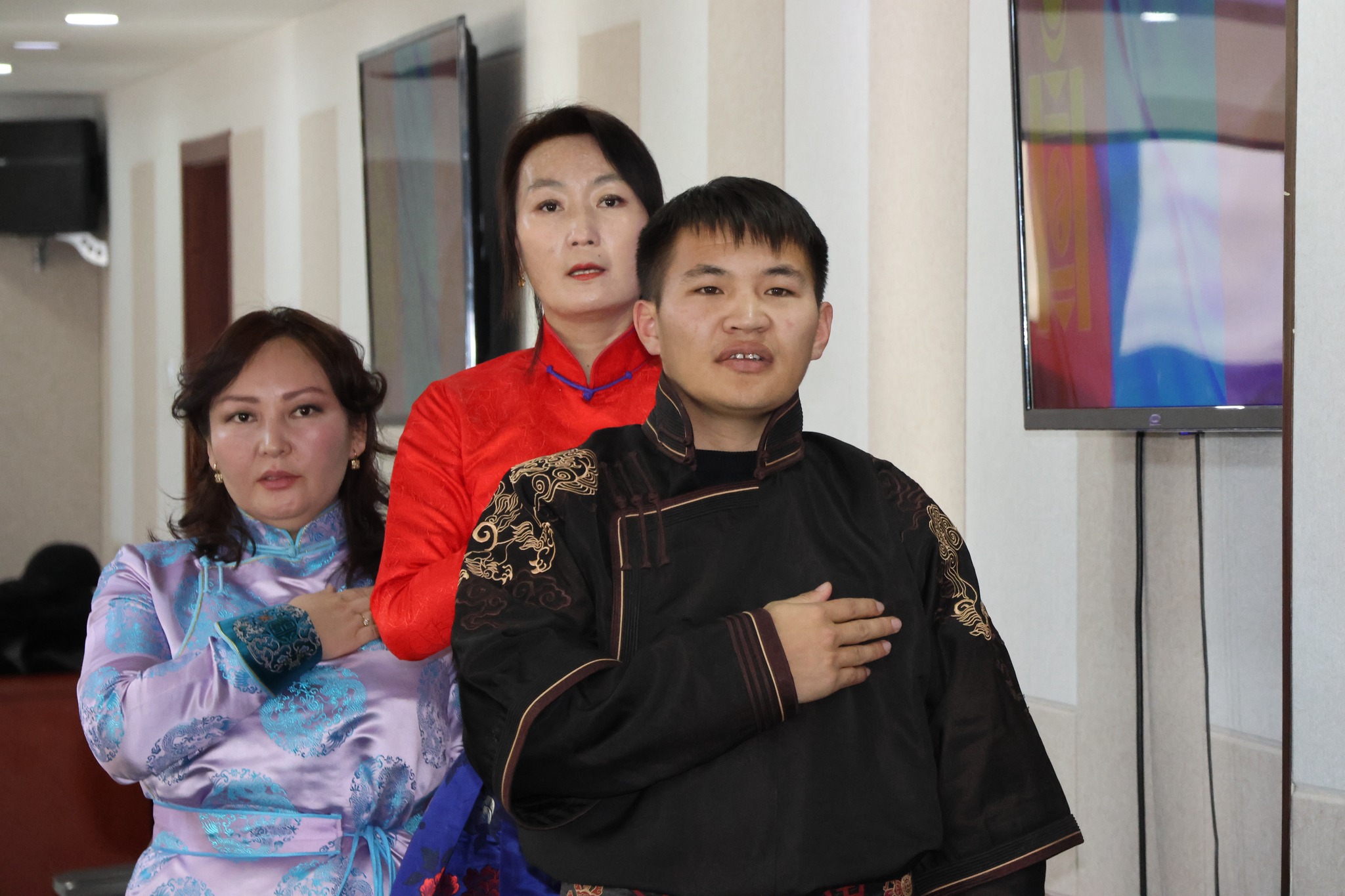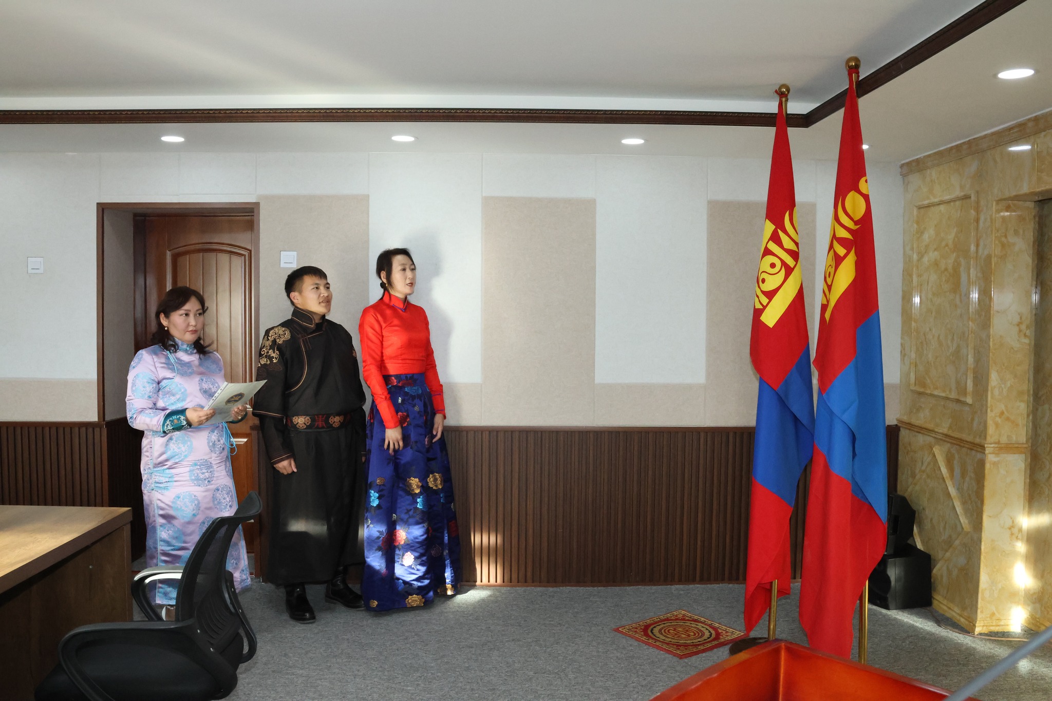 “Бүгд Найрамдах Улс тунхагласан өдөр”-ийг угтан Төрийн албаны тухай хууль, тогтоомж, Монгол улсын Ерөнхийлөгчийн зарлигаар батлагдсан “Төрийн захиргааны албан хаагчийн тангараг өргөх ёслолын журам”-ын дагуу 2025 оны 11 дүгээр сарын 25-ны өдөр төрийн жинхэнэ албан хаагчийн тангараг өргөх ёслолын ажиллагаа зохион байгуулагдаж, төрийн албаны мэргэшлийн шалгалт өгч тэнцэн, туршилтаар ажиллах хугацаандаа цаашид төрийн жинхэнэ албанд үр бүтээлтэй ажиллаж чадахаа нотлон харуулсан Шивээговь сумын Засаг даргын Тамгын газрын Хүнс, жижиг дунд үйлдвэрлэл, хоршооны асуудал хариуцсан мэргэжилтэн Б.Алтансүх, Төсөв, төрийн сангийн мэргэжилтэн Б.Түвшинжаргал, Хөрөнгө оруулалт, эдийн засгийн төлөвлөлт, худалдан авах ажиллагаа хариуцсан мэргэжилтэн Д.Баттуул нар төрийн жинхэнэ албан хаагчийн тангараг өргөлөө.