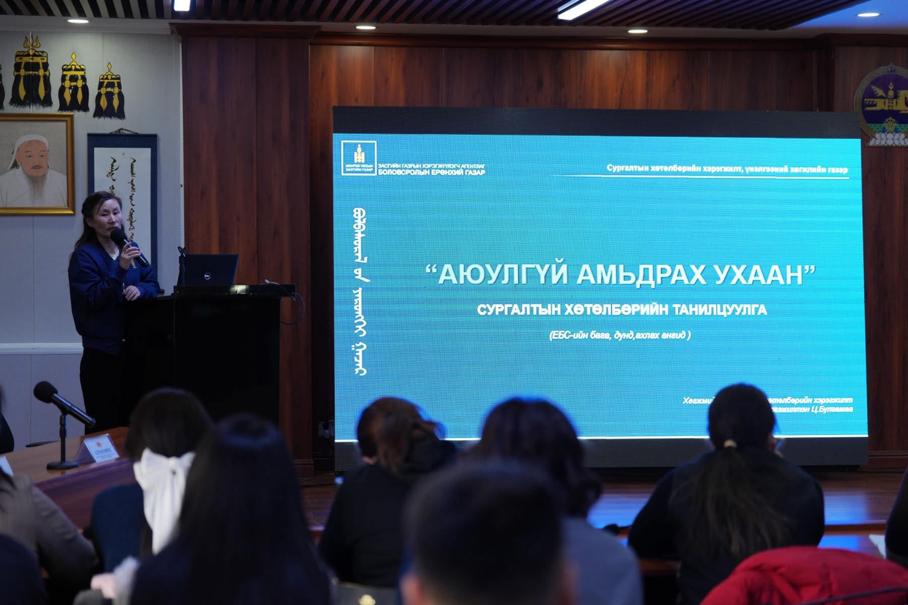 “АЮУЛГҮЙ АМЬДРАХ УХААН” ХӨТӨЛБӨРИЙН СУРГАГЧ БАГШ БЭЛТГЭХ СУРГАЛТ ГОВЬСҮМБЭР АЙМГААС ЭХЭЛЛЭЭ