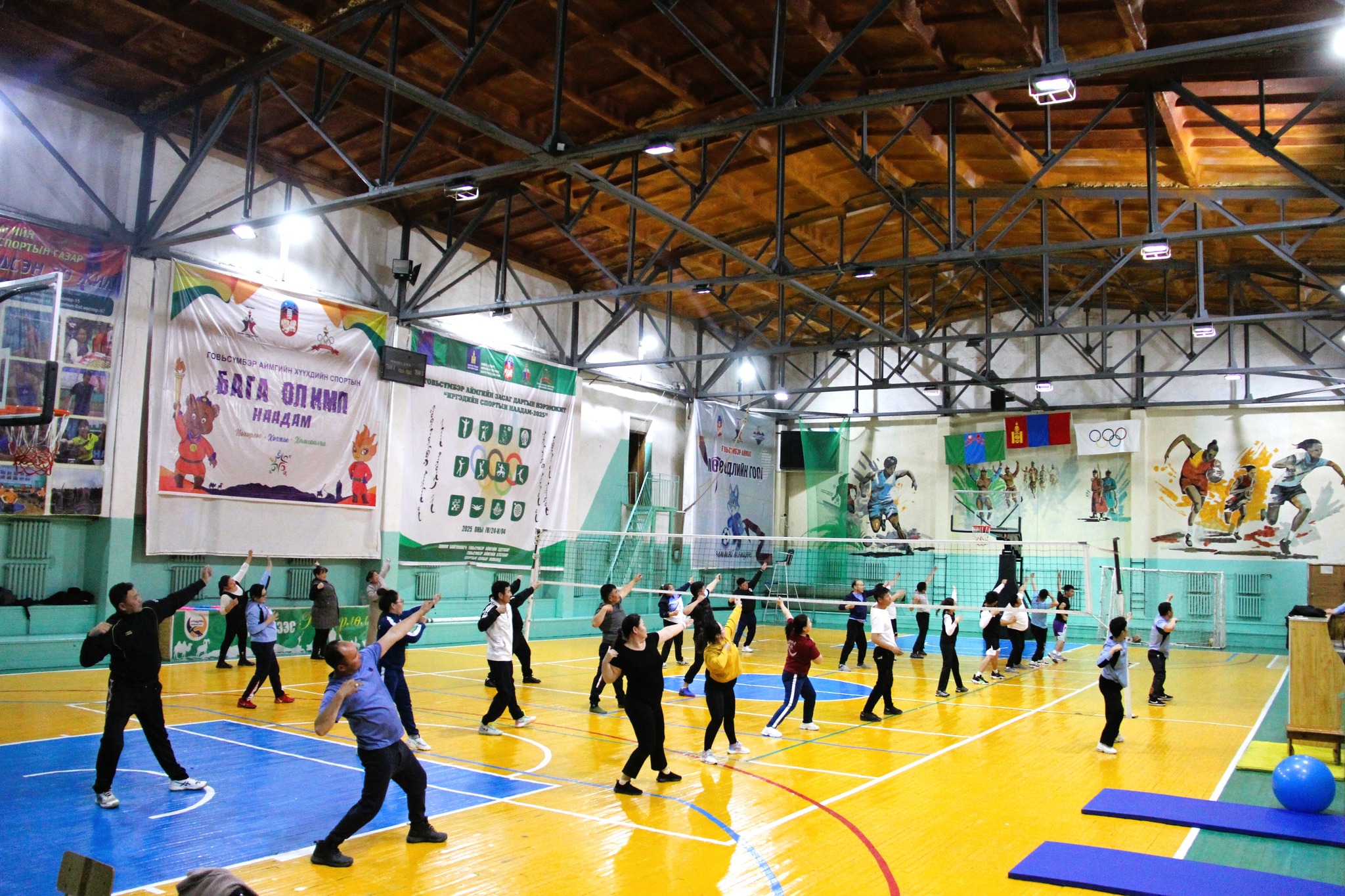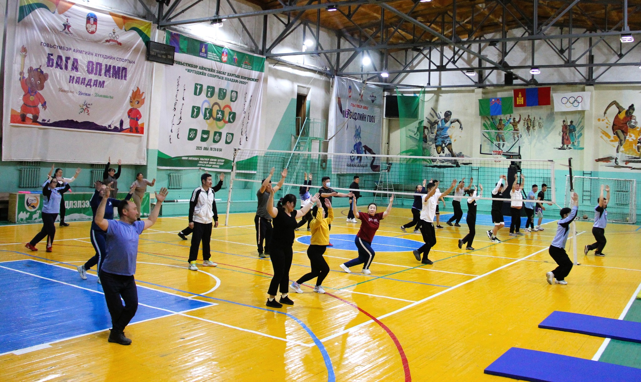 Өглөөний арга хэмжээний хөтөлбөрт Биеийн жингийн индекс, биеийн ба бүсэлхийн өөхний хэмжээ, биен дэх ус, ажиллах чадвар, биологийн болон физиологийн нас тодорхойлох хэмжилтүүд хийгдэж уян хатан, цагариг эргүүлэх, софт волейбол, хөгжилтэй волейбол, сагсан бөмбөг, ширээний теннис роботтой тоглох, бадминтон, гар барилдаан, дартс зэрэг төрлөөр анхан шатны мэдлэг олгох үйл ажиллагаа явагдсан байна. Говьсүмбэрчүүд та бүхнийг идэвхтэй оролцохыг уриалж байна.