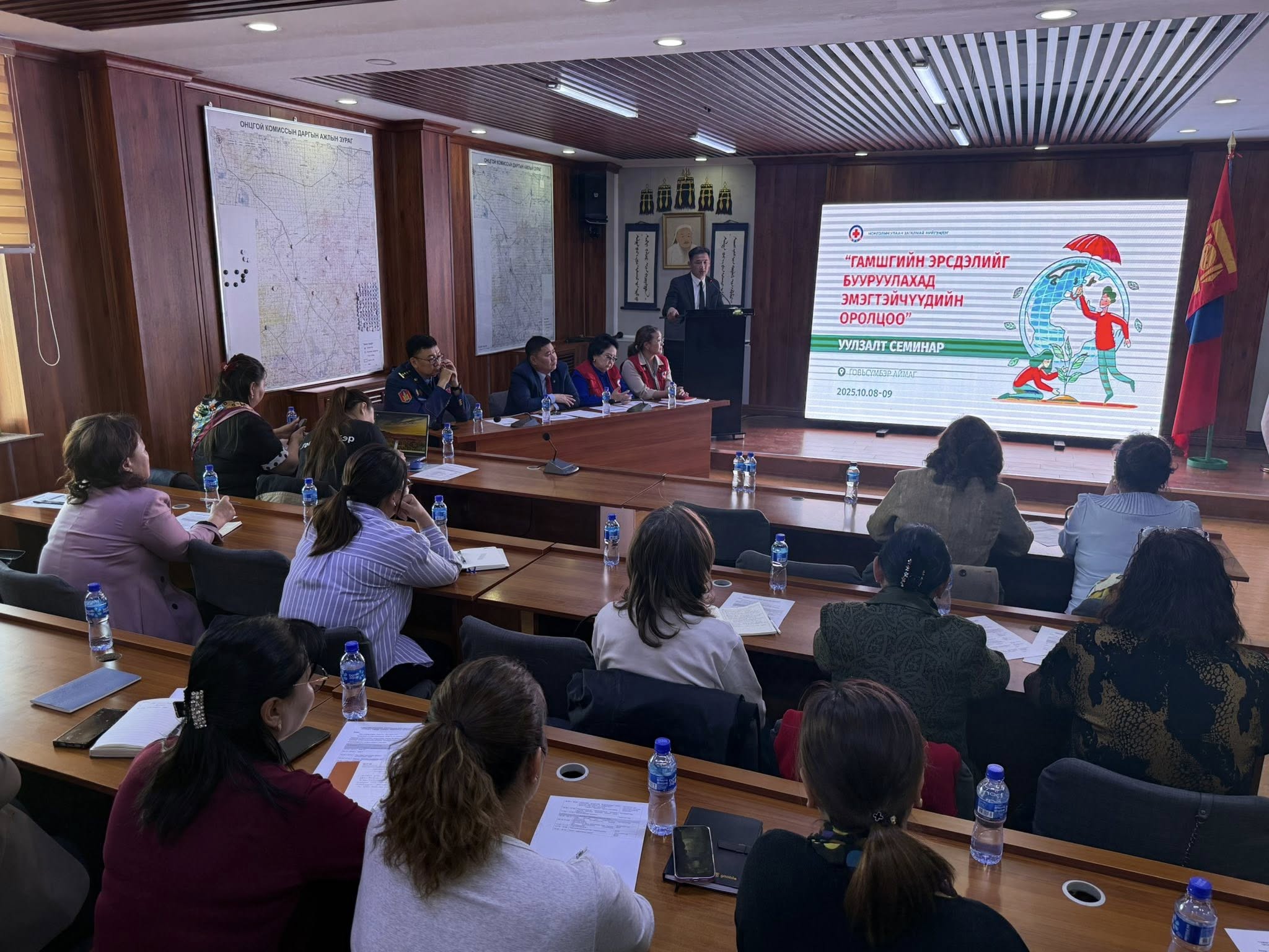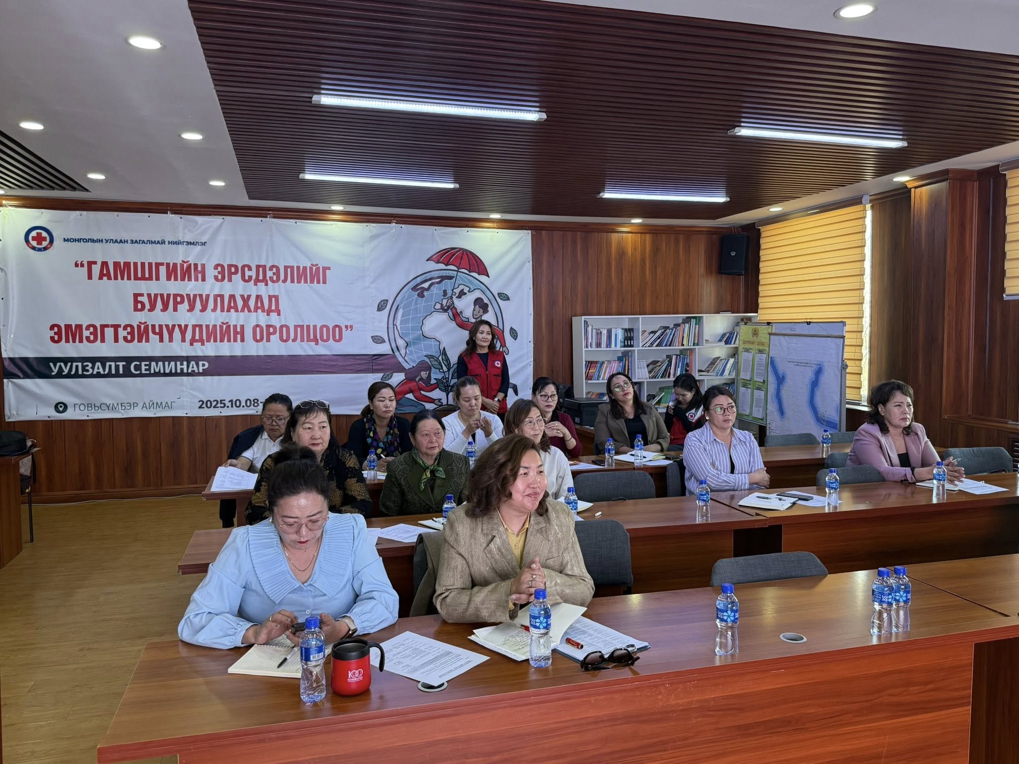 Гамшгийн эрсдэлийг бууруулах олон улсын өдрийг тохиолдуулан Монголын улаан загалмай нийгэмлэгээс “Гамшгийн эрсдэлийг бууруулахад эмэгтэйчүүдийн оролцоо” сэдэвт уулзалт семинарыг орон нутгийн Дунд шатны хороодоор дамжуулан бүсчилсэн хэлбэрээр зохион байгуулж байна.