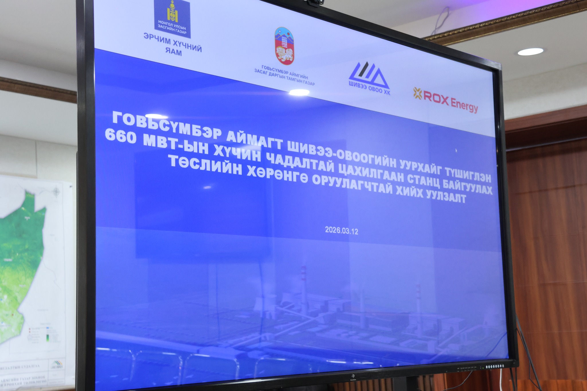 ГОВЬСҮМБЭР АЙМАГТ 660 МВт-ЫН ЦАХИЛГААН СТАНЦ БАЙГУУЛАХ ТӨСЛИЙН ХӨРӨНГӨ ОРУУЛАГЧТАЙ УУЛЗАЛТ ХИЙЛЭЭ.