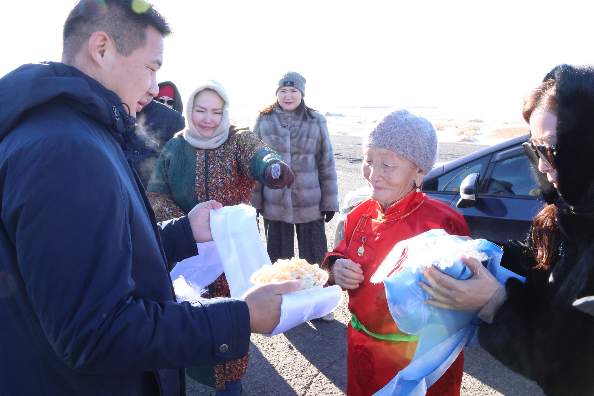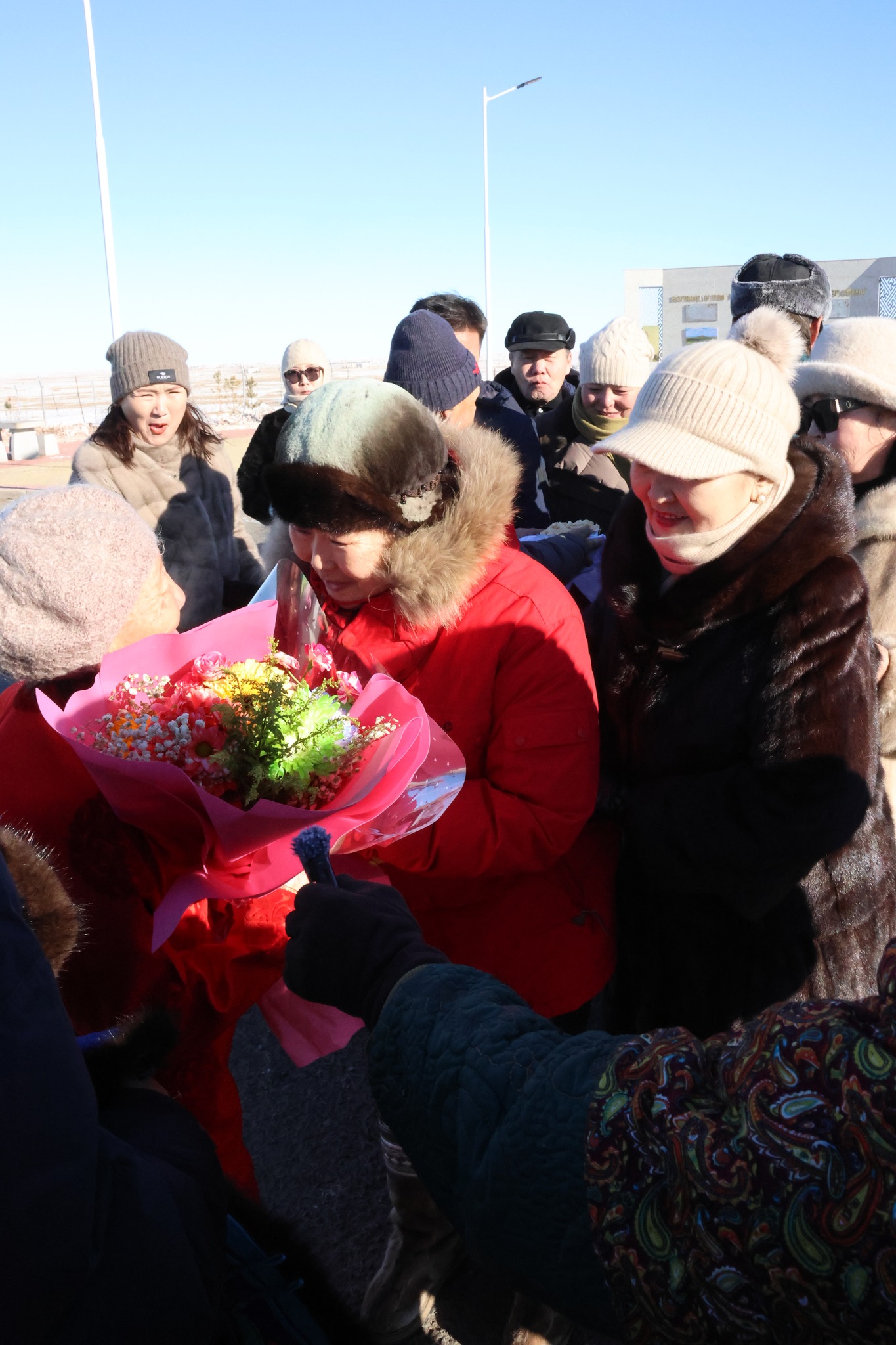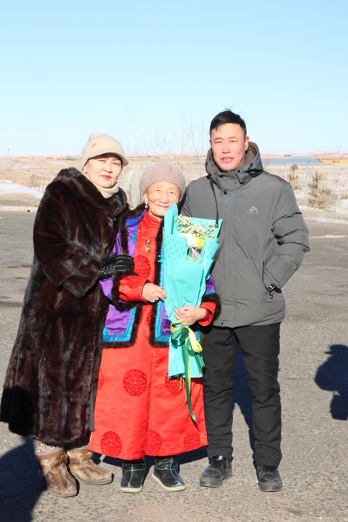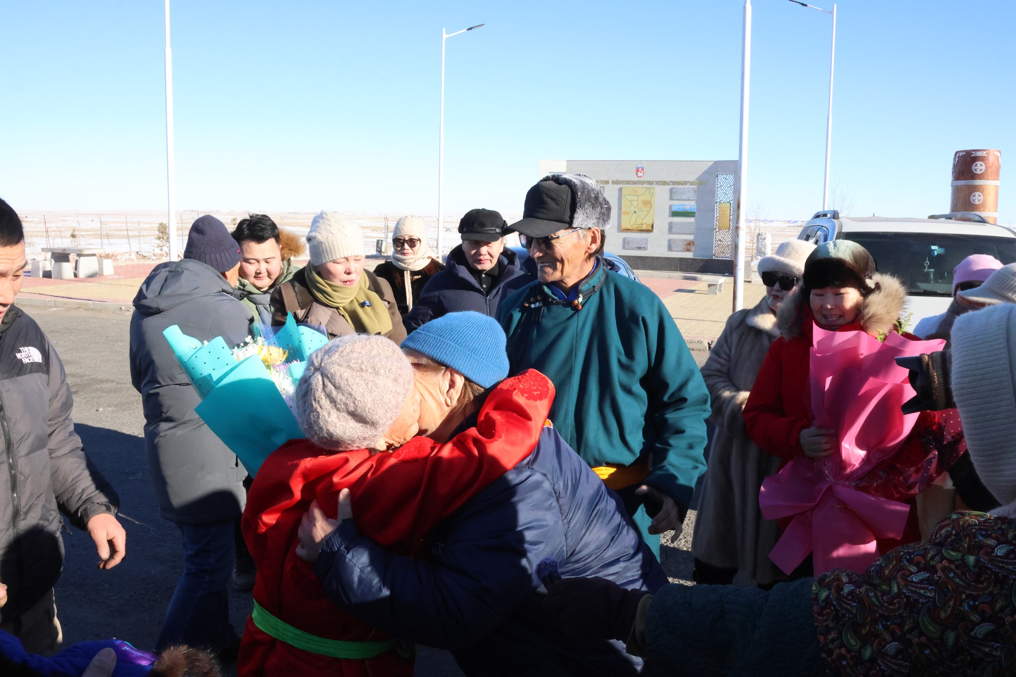 Өнөөдөр аймгийн удирдлагууд, боловсролын салбарын удирдлага албан хаагчид Ё.Маам багшид хүндэтгэл үзүүлж, угталтын хаалга н дээр тосон авч, баяр хүргэлээ.