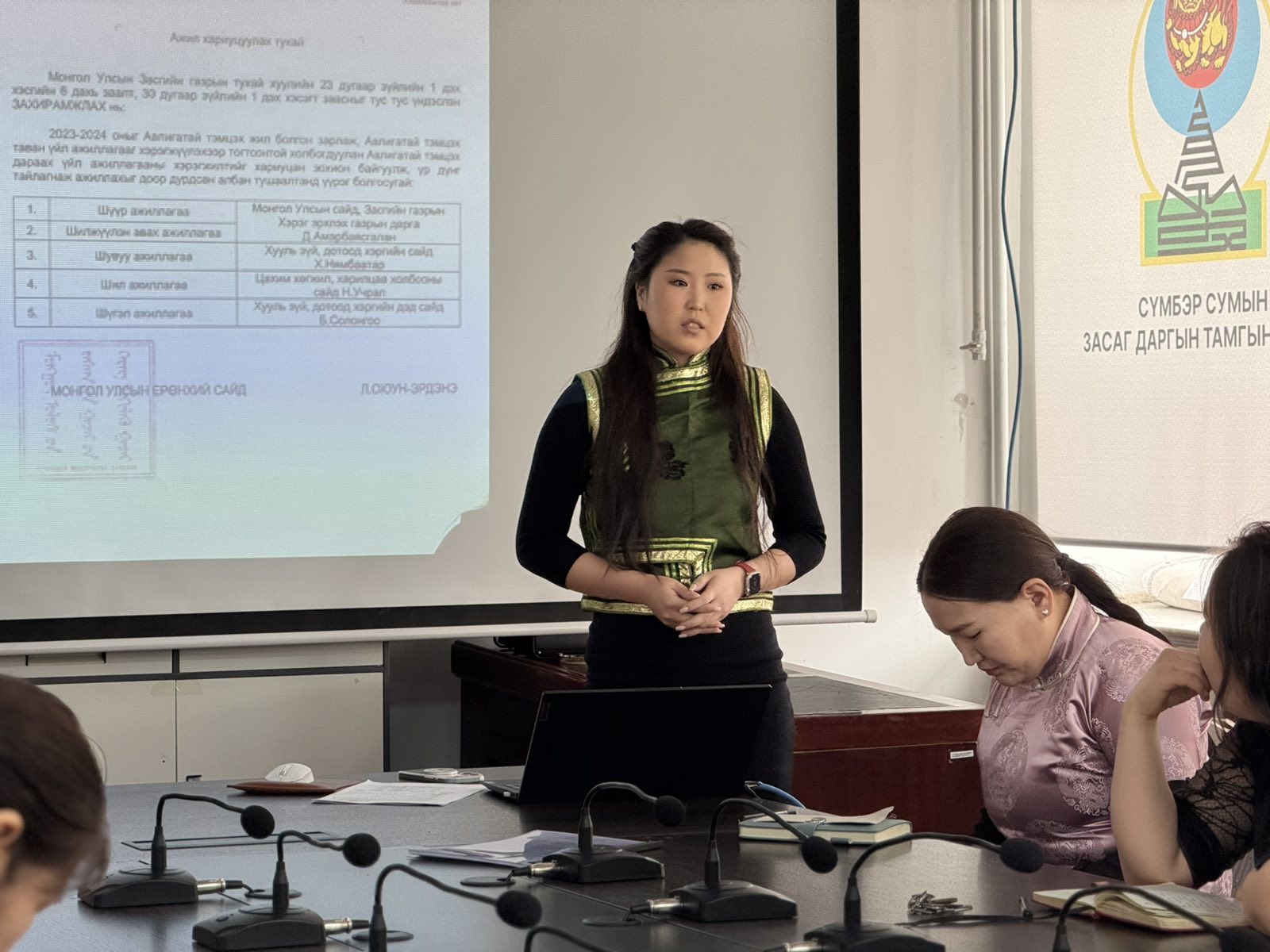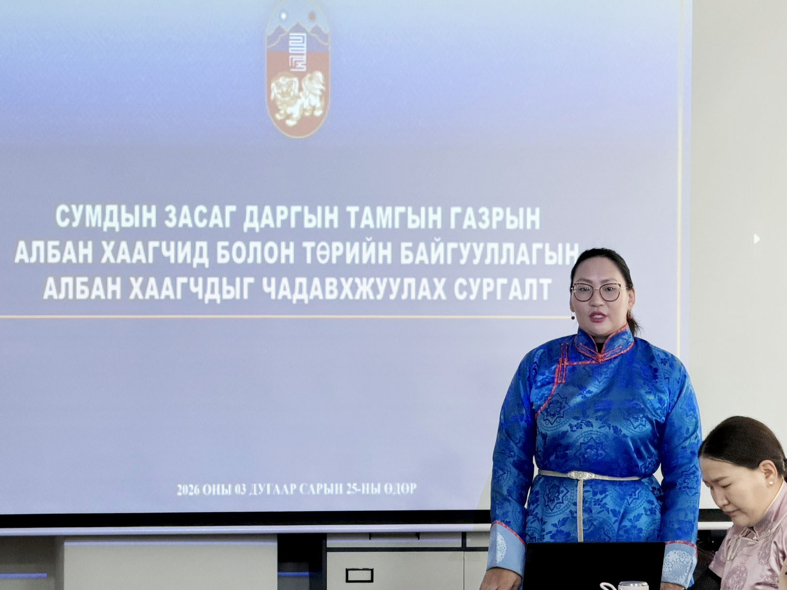 "СҮМБЭР СУМЫН ЗАСАГ ДАРГЫН ТАМГЫН ГАЗРЫН АЛБАН ХААГЧДЫГ ЧАДАВХЖУУЛАХ СУРГАЛТ ЗОХИОН БАЙГУУЛЛАА. /2026-04-01/