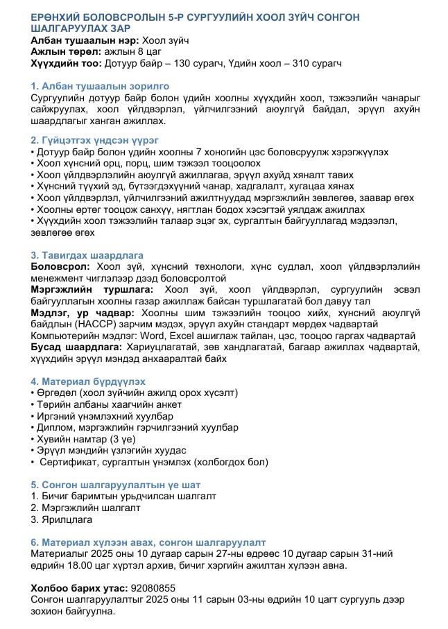 09:00-18:00 хооронд ажлын цагаар утсаар холбогдоно уу? Мөн салбар дээр ирж анкет бөглөнө үү