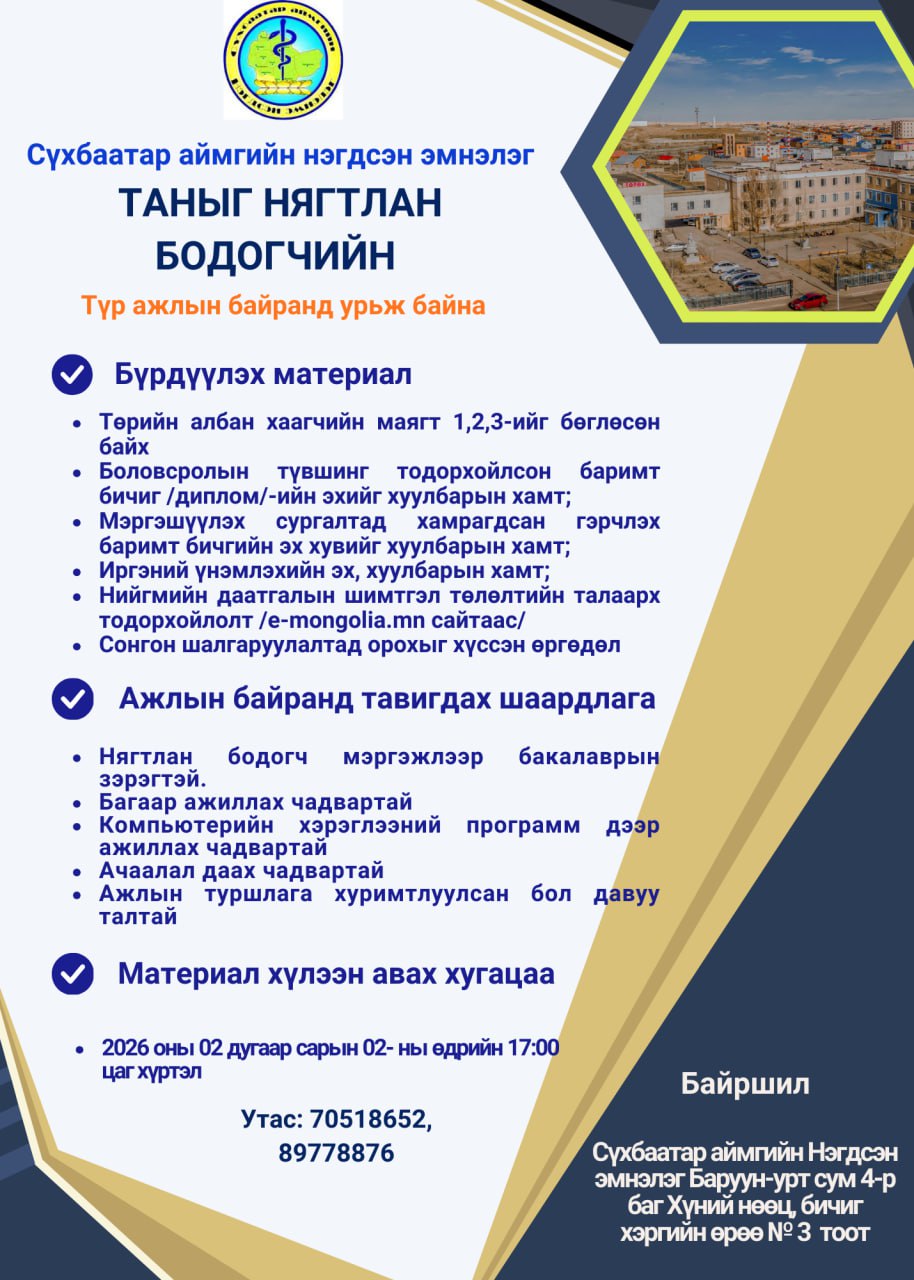 Номин Агуулах худалдаа Сүхбаатар салбар нь дараах ажлын байранд ажилтан шалгаруулж ажилд авна.