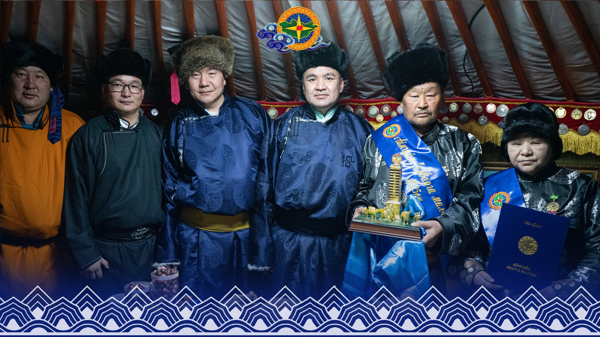Аймгийн Засаг дарга Л.Төмөрчөдөр, Төв аймгийн цагдаагийн газрын дарга Цагдаагийн хурандаа Б.Баянмөнх, Аргалант сумын Засаг дарга Я.Энхбаатар нар “Сүрээр дарагч” хэмээх гал морин жилийн босгон дээр Аймгийн аварга малчин өрхөөр тодорсон Аргалант сумын Хөшөөт 2-р багийн малчин О.Бямба-Очирын гэр бүлд шагналыг гардуулж өглөө.