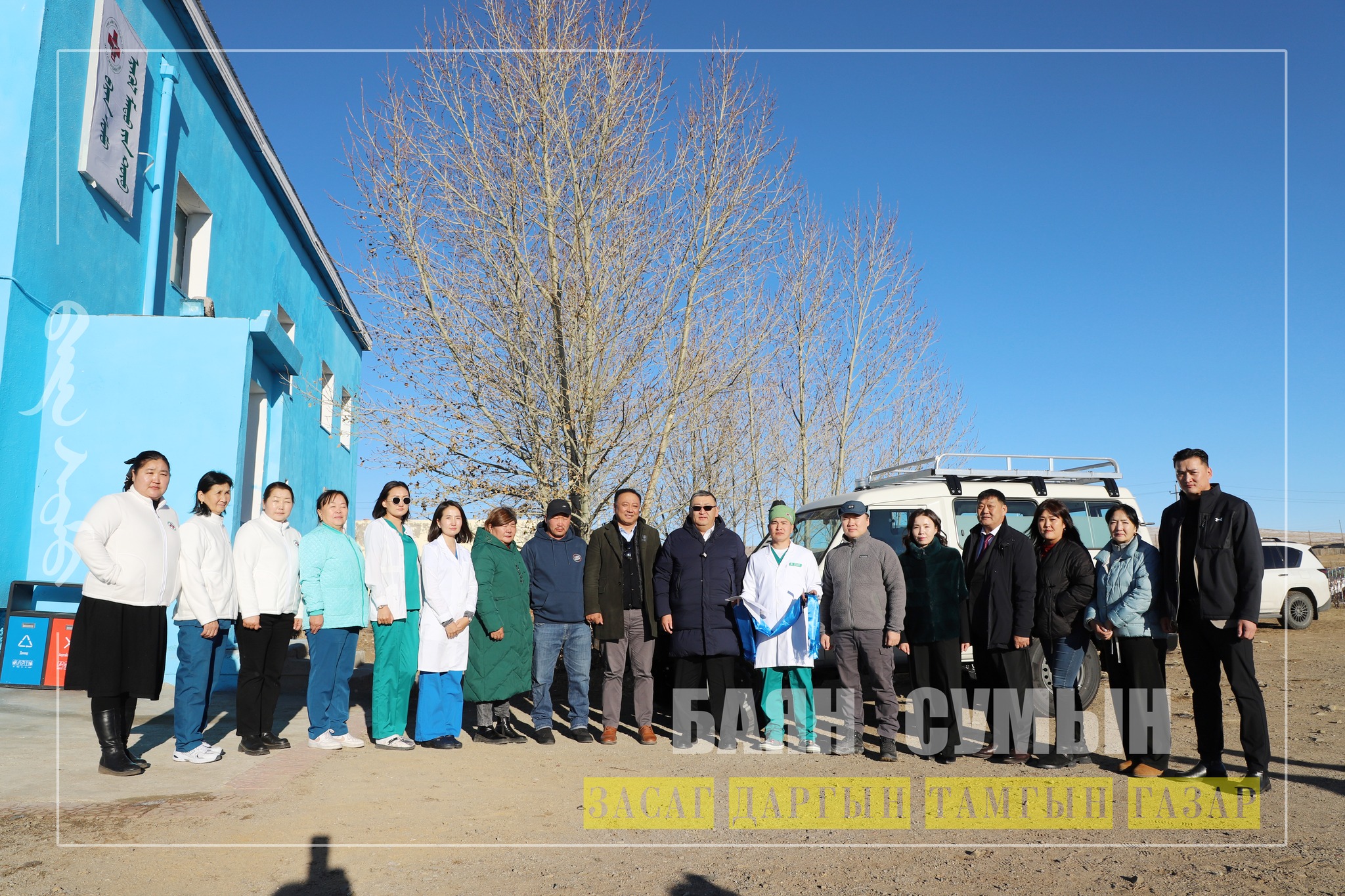 УИХ-ын гишүүн Ц.Туваан, С.Эрдэнэболд, Д.Батбаяр болон Аймгийн ИТХ-ын төлөөлөгч Ц.Номин-Эрдэнэ, сумын ИТХ-ын дарга А.Хатанбүүвэй нар сумын эрүүл мэндийн төвийн үйл ажиллагаатай танилцаж сумын эрүүл мэндийн төвд нэн шаардлагатай байсан автомашиныг Дэлхийн банкны санхүүжилттэй төслийн хүрээнд шийдвэрлэж Toyota Land cruiser 78 авто машиныг өнөөдөр хүлээлгэн өглөө.