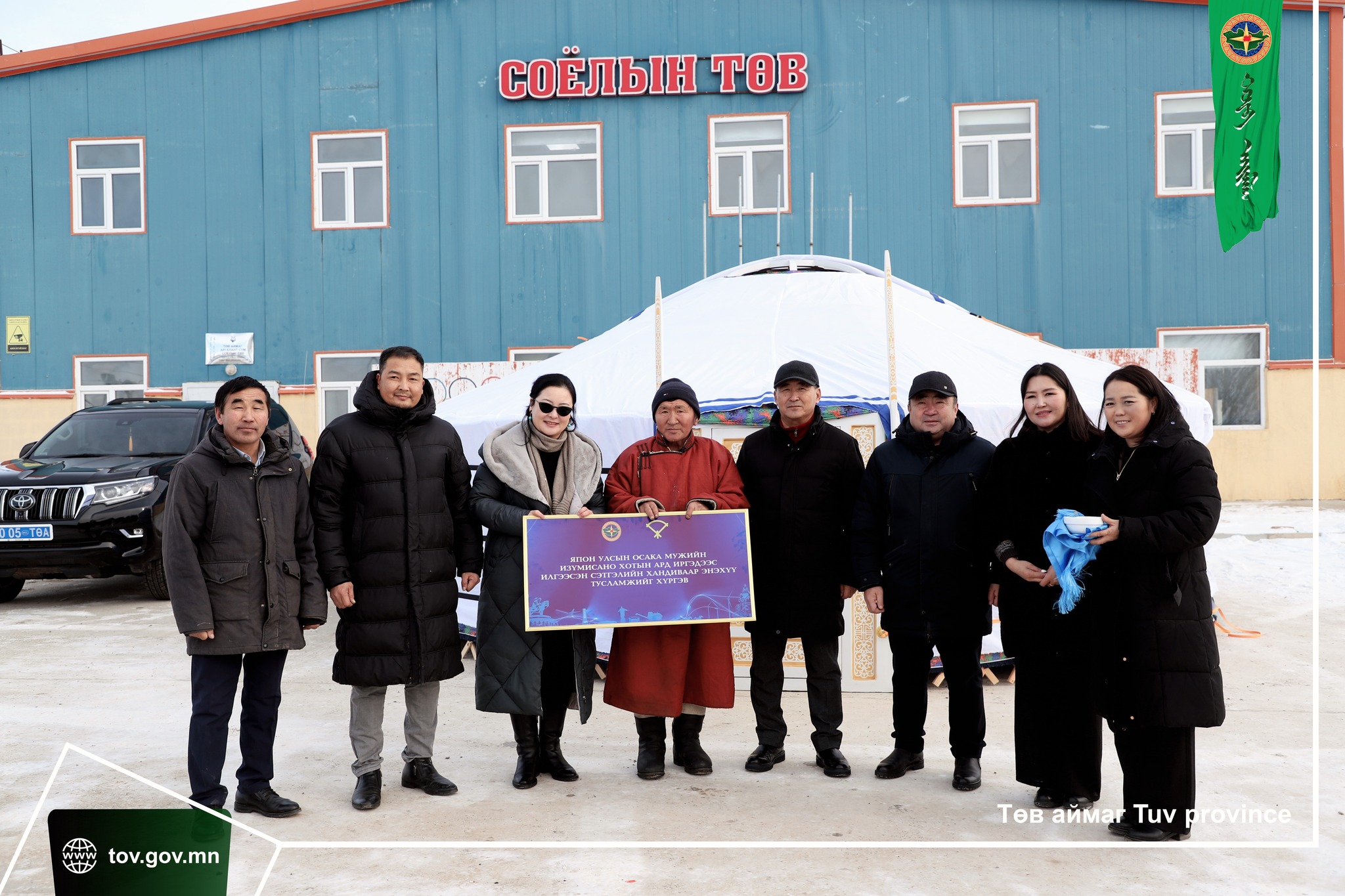 Төв аймгийн гадаад харилцаа, хамтын ажиллагаа сүүлийн жилүүдэд олон салбарт өргөжин хөгжиж, сайн сайхан болон хүнд хэцүү цаг үед бие биедээ сэтгэлийн дэм, урам өгсөөр өнөөдрийг хүрсэн билээ. Үүний нэгэн илэрхийлэл болгож 7 дугаар сард Лүн, Баянхангай, Аргалант сумдыг дайран өнгөрсөн байгалийн гамшигт үзэгдэлд өртсөн Аргалант, Лүн сумын өрхүүдэд аймгийн найрсаг харилцаат Япон улсын Осака мужийн Изүмисано хотын сайхан сэтгэлт иргэдээс илгээсэн өргөө цагаан гэрийг өнөөдөр аймгийн ЗДТГ-ын дарга С.Цогбаяр, ТЗУХ-ийн дарга Г.Мөнхгэрэл, аймгийн ИТХ-ын төлөөлөгч Д.Баярбат нар гардуулан өглөө.
