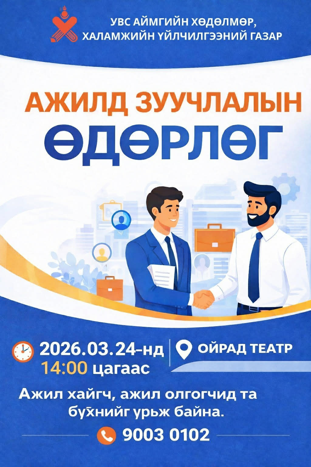 Ажил хайгч, ажил олгогчид та бүхнийг урьж байна 2026.03.24-нд Ойрад театрт