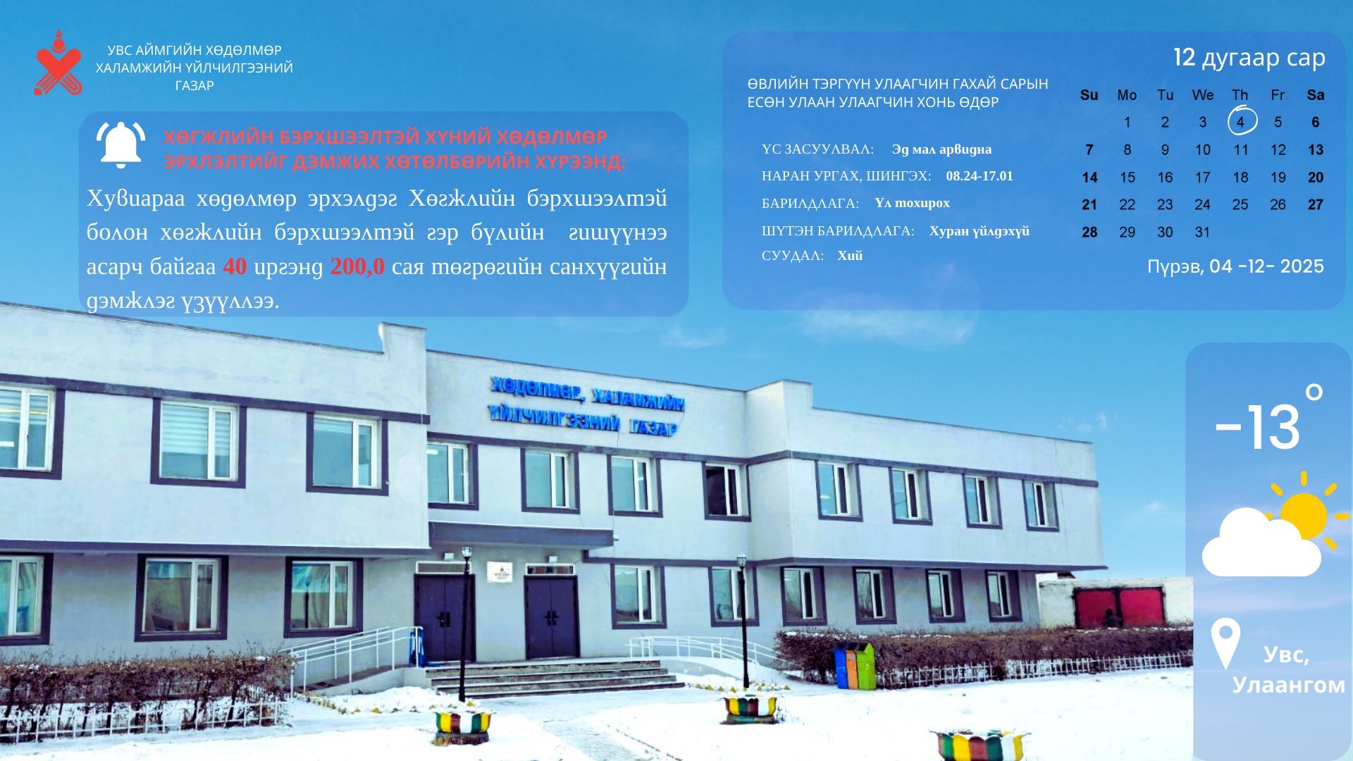 Хувиараа хөдөлмөр эрхлэгч хөгжлийн бэрхшээлтэй болон хөгжлийн бэрхшээлтэй гэр бүлийн гишүүнээ асардаг 40 иргэнд 200 сая төгрөгийн санхүүгийн дэмжлэг үзүүллээ.