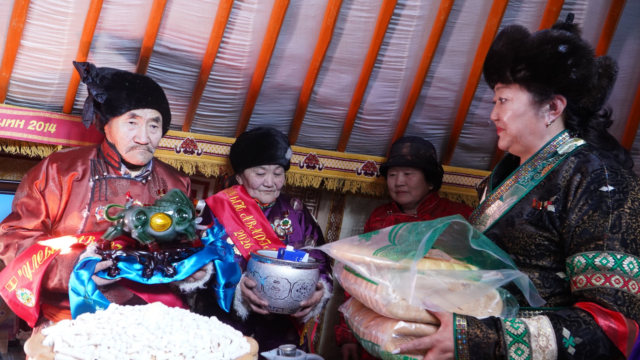 Монгол Улсын аварга малчин Д.Баасанхүү, гэргий Д.Оюун нарын шагналыг Монгол Улсын Шадар сайд, УИХ-ын гишүүн Т.Доржханд, УИХ-ын гишүүн, Хүний хөгжил, нийгмийн бодлогын байнгын хорооны дарга Б.Найдалаа, Монгол Улсын Боловсролын дэд сайд Д.Гантулга, аймгийн Засаг дарга Г.Өнөрбаяр, ИТХ-ын төлөөлөгч М.Заяат нар Өвөр хашаатын өвөлжөөнд нь гардуулан өгөв.